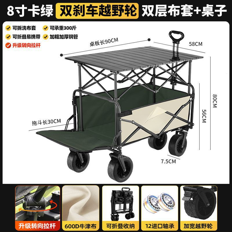 • 카드 그린 [이중 두꺼운 옥스포드 천] - 업그레이드/ 8inch 오프로드 휠/더블 브레이크 + 강화된 나뭇결 테이블