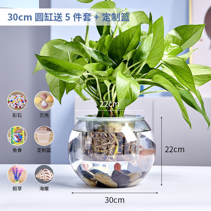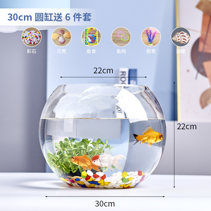 사무실 작은 물고기 탱크 두꺼운 투명 유리 거북이 탱크 거실 홈 데스크탑 라운드 조경 작은 금붕어 탱크스토어 가기