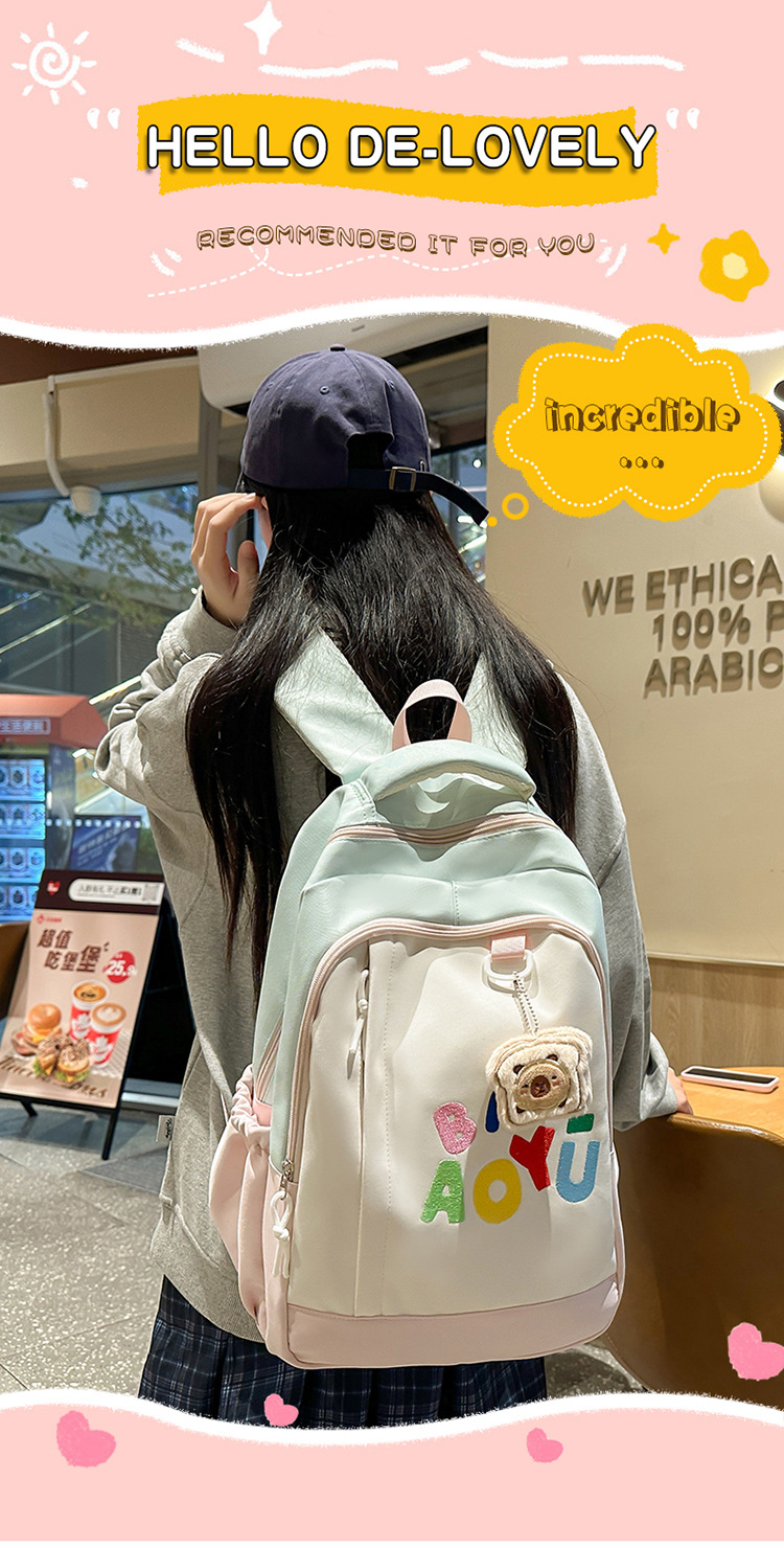 학생 스쿨백 여성 대용량 캐주얼 컴퓨터 배낭 2025 새로운 한국식 고등학생 컬러 명암 귀여운 배낭스토어 가기