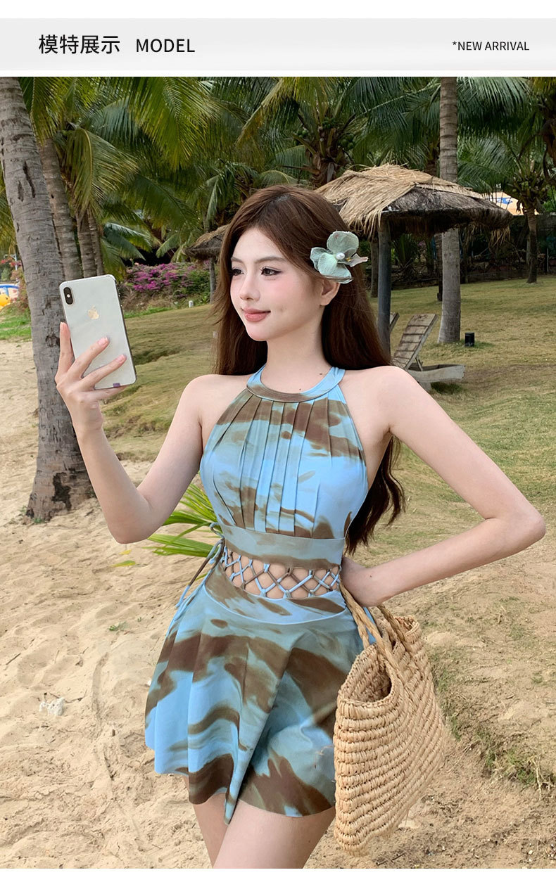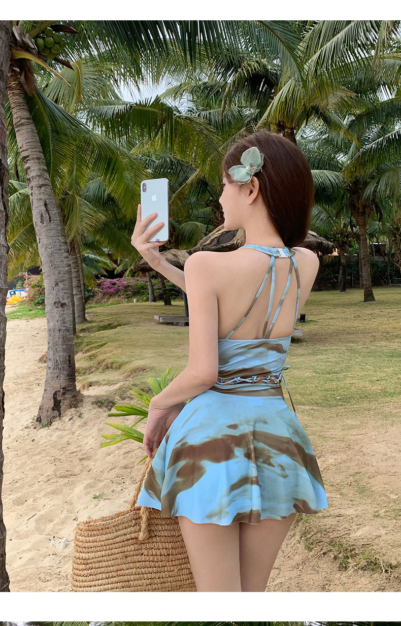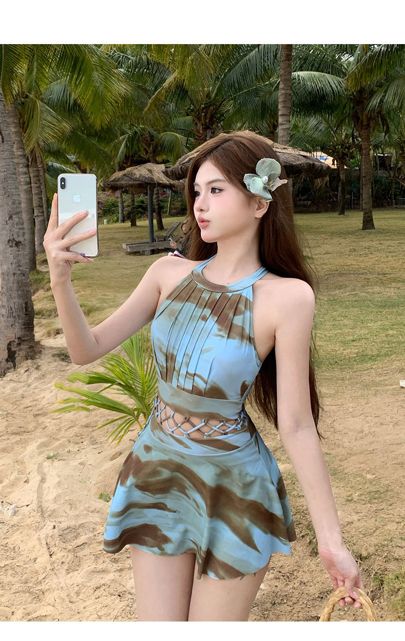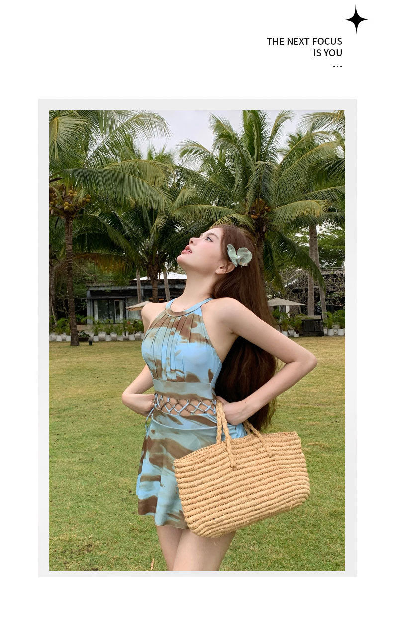 여성용 수영복 2025 새로운 여름 스타일 하이 엔드 중공 원피스 스커트 스타일 배 커버 슬리밍 보수적 인 긴팔 블라우스 투피스 세트스토어 가기