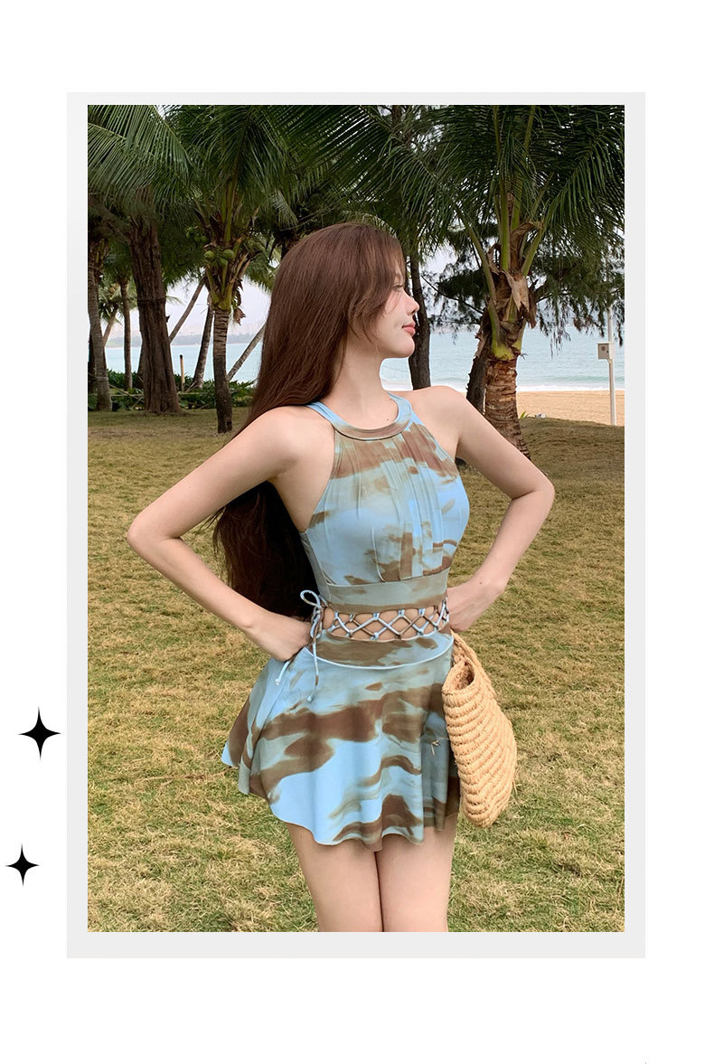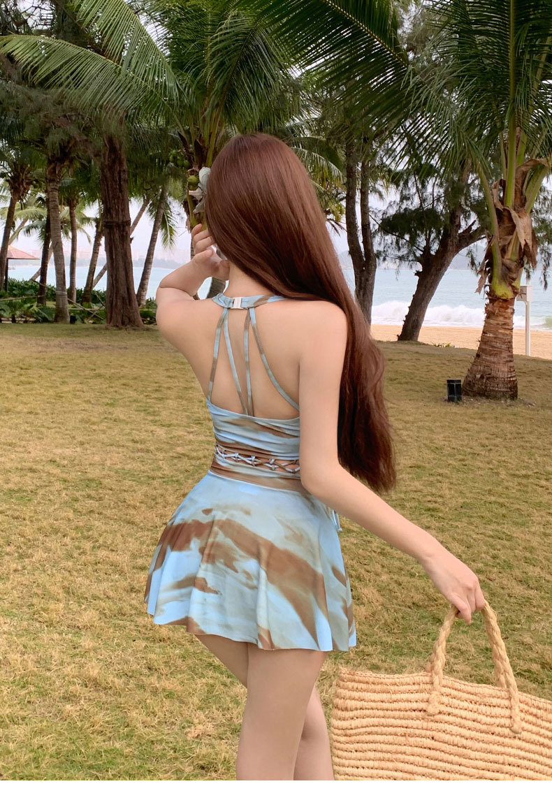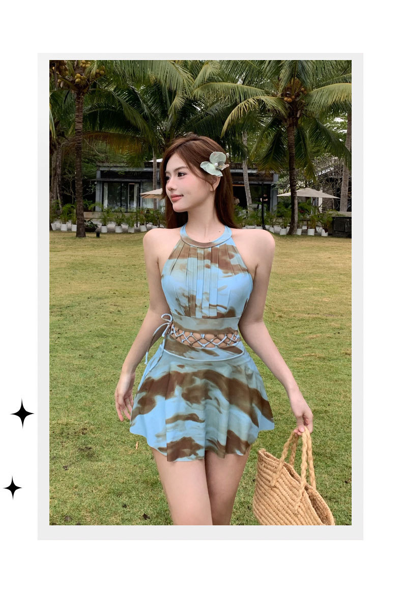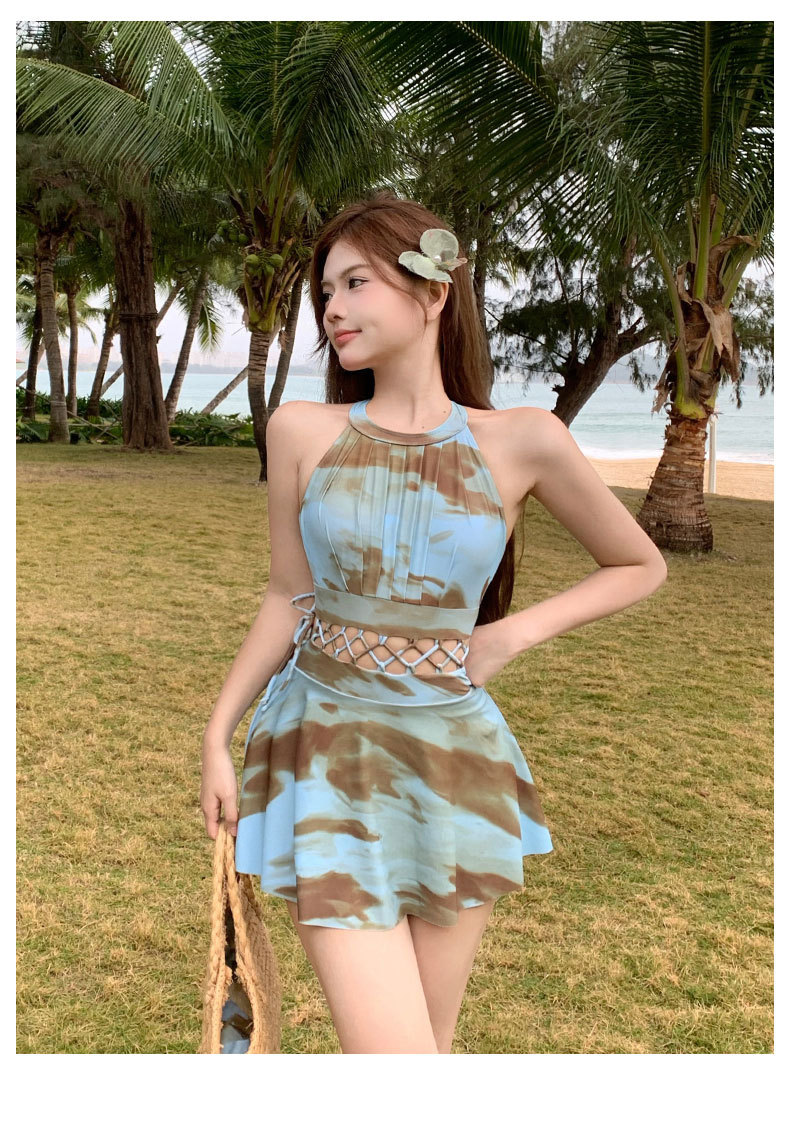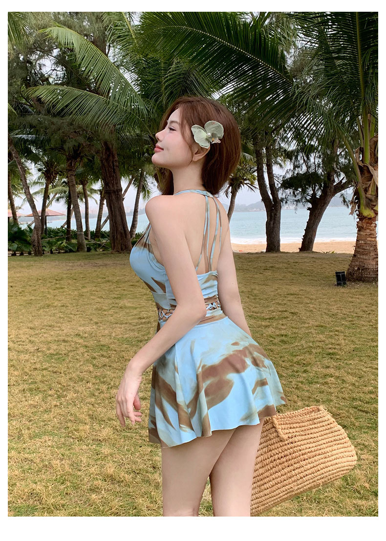 여성용 수영복 2025 새로운 여름 스타일 하이 엔드 중공 원피스 스커트 스타일 배 커버 슬리밍 보수적 인 긴팔 블라우스 투피스 세트스토어 가기