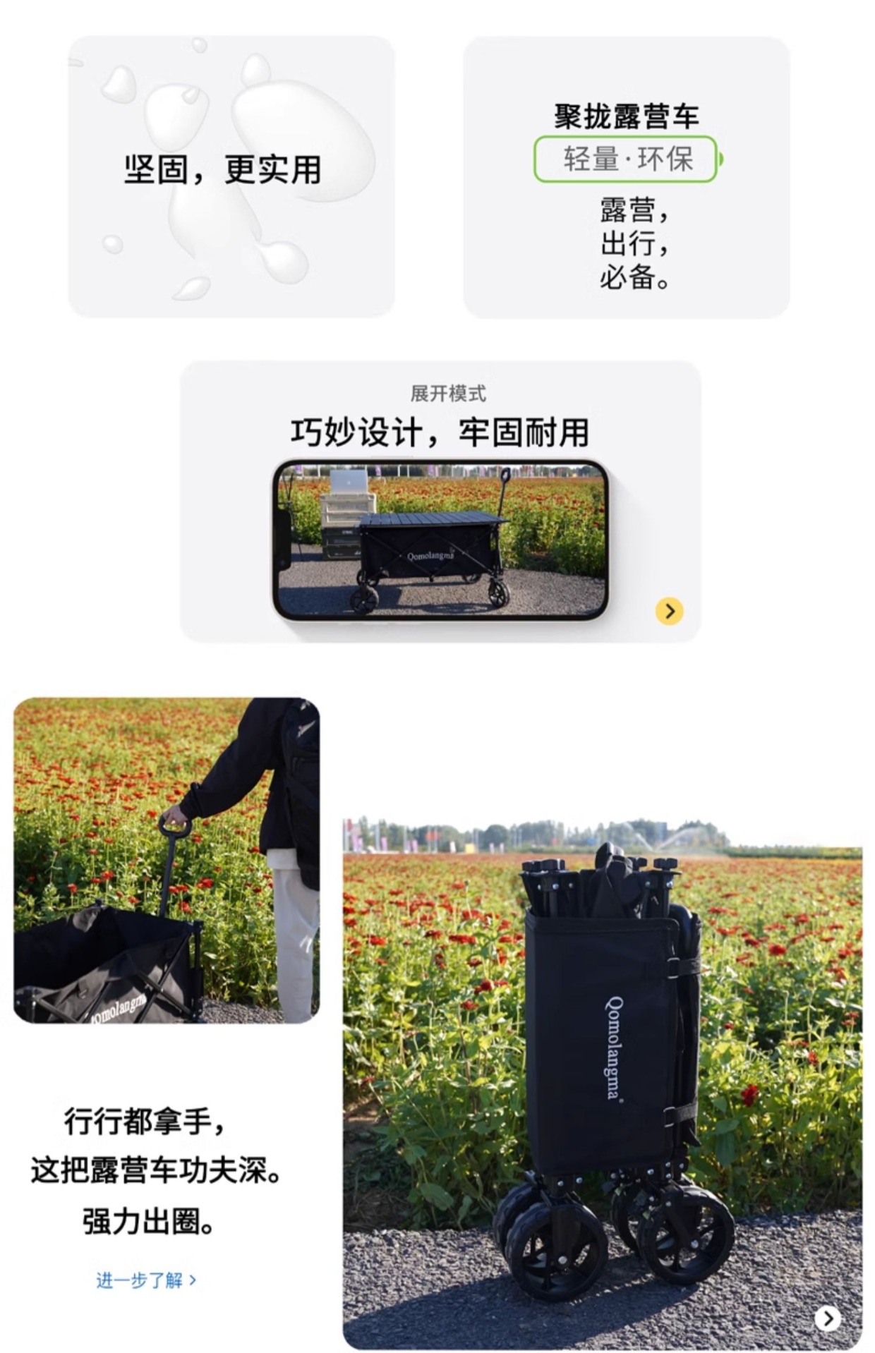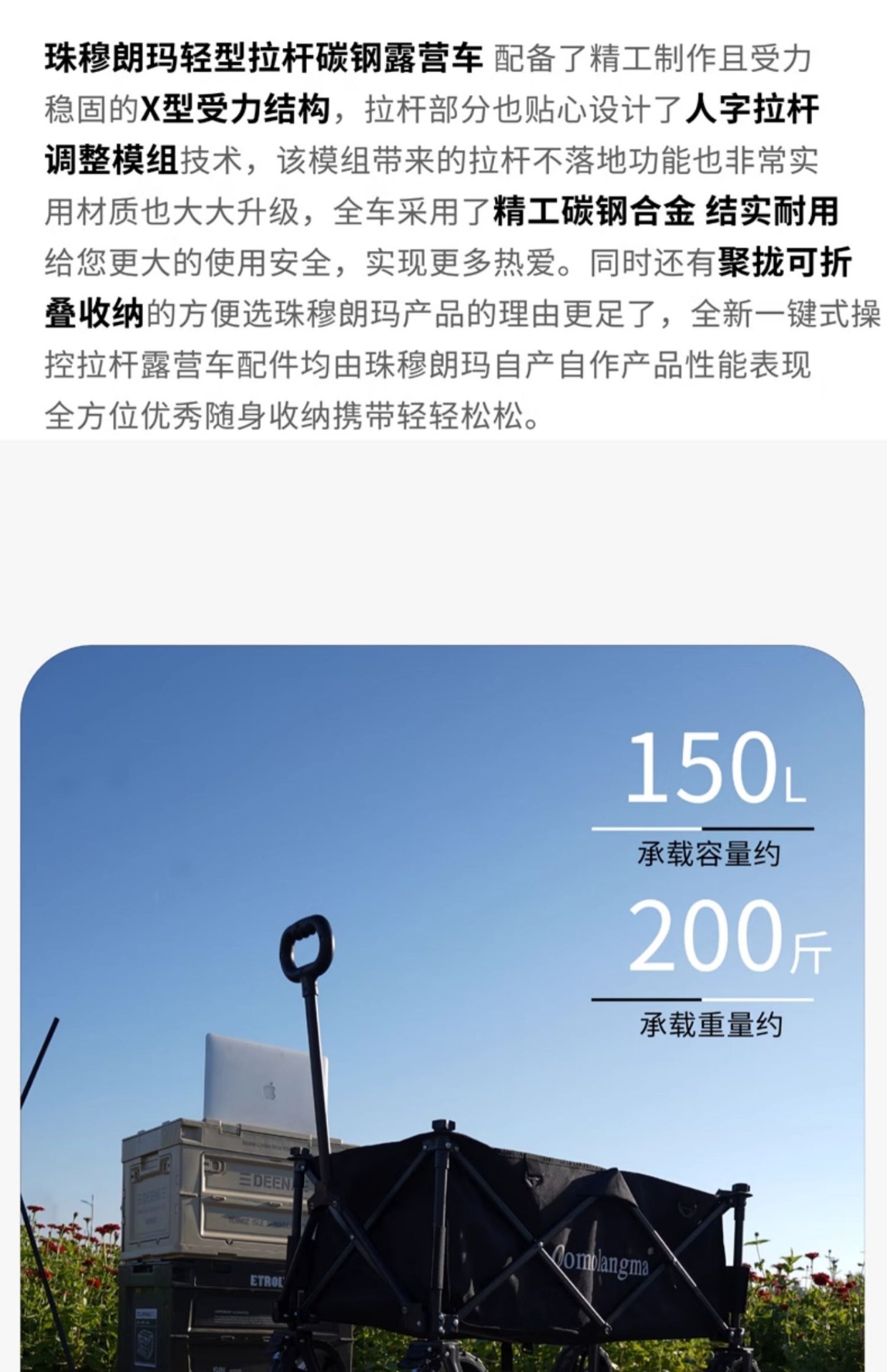 에베레스트 캠핑카 두꺼운 무소음 휠 캠핑카 야외 접이식 트롤리 캠핑카 소형 트롤리스토어 가기