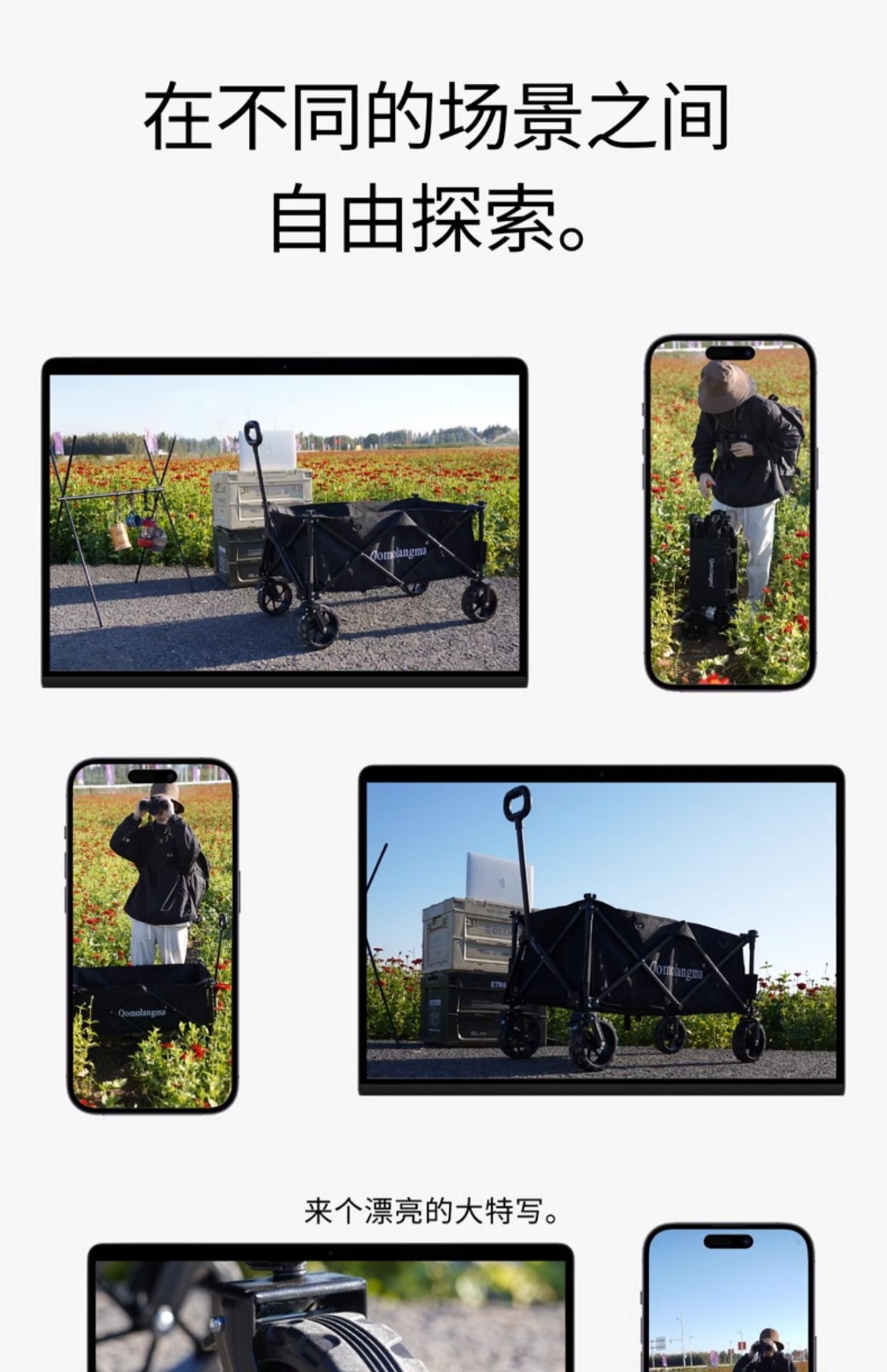 에베레스트 캠핑카 두꺼운 무소음 휠 캠핑카 야외 접이식 트롤리 캠핑카 소형 트롤리