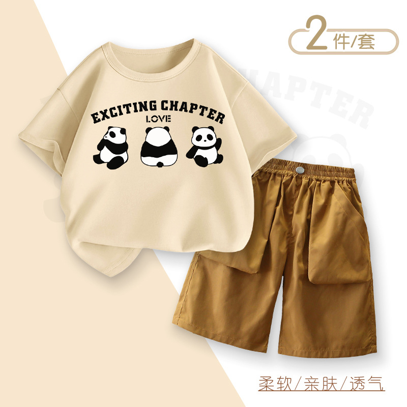 소년 여름 정장 2025 새로운 패션 다목적 반팔 티셔츠 작업복 큰 주머니 반바지 소년 투피스 세트스토어 가기