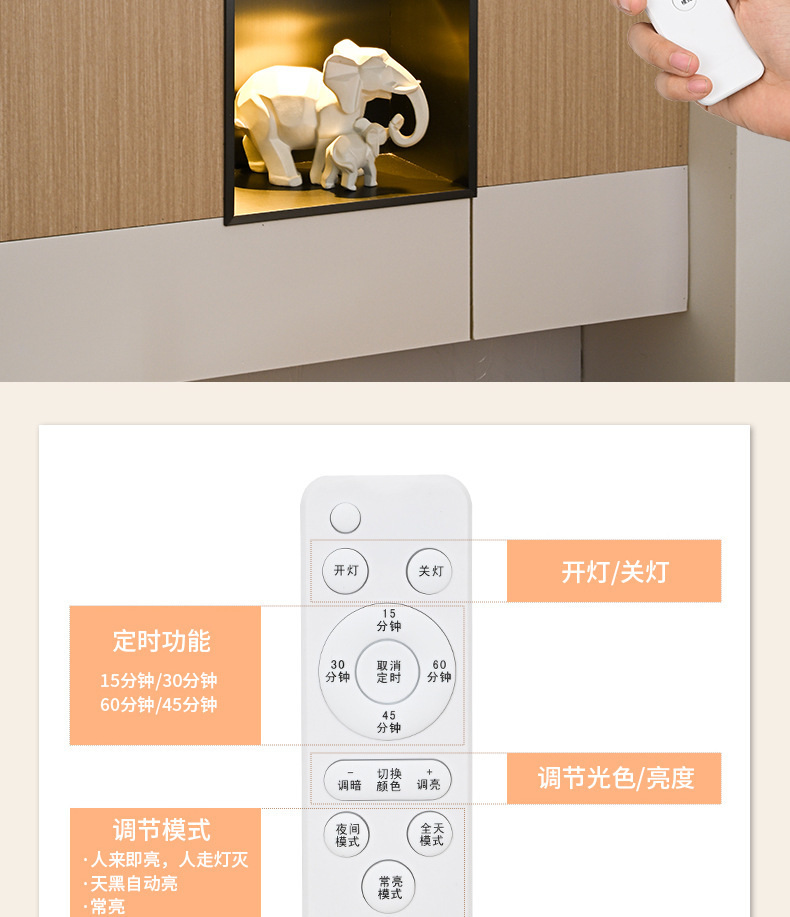 공장 직판 인체 감지 야간등 USB 충전 와인 캐비닛 디스플레이 캐비닛 분위기등 에너지 절약형 LED 침대 옆등스토어 가기