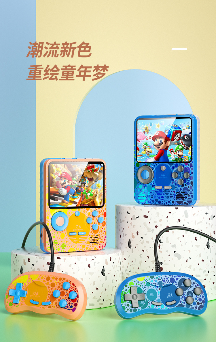 G6 휴대용 게임 콘솔 마카롱 보조베터리 게임 콘솔 666-in-one Retro 3.5inch HD 다채로운 화면