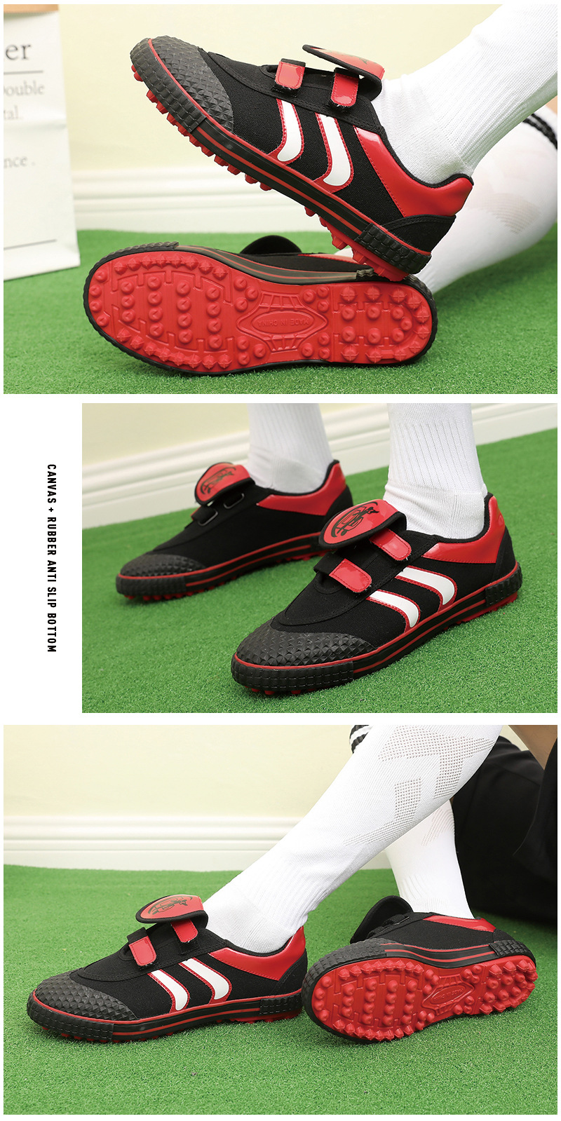 Lutai 맞춤형 벨크로 어린이 축구 신발 남성용 캔버스 고무 밑창 작은 스파이크 훈련 신발 어린이 신발 스포츠 신발스토어 가기