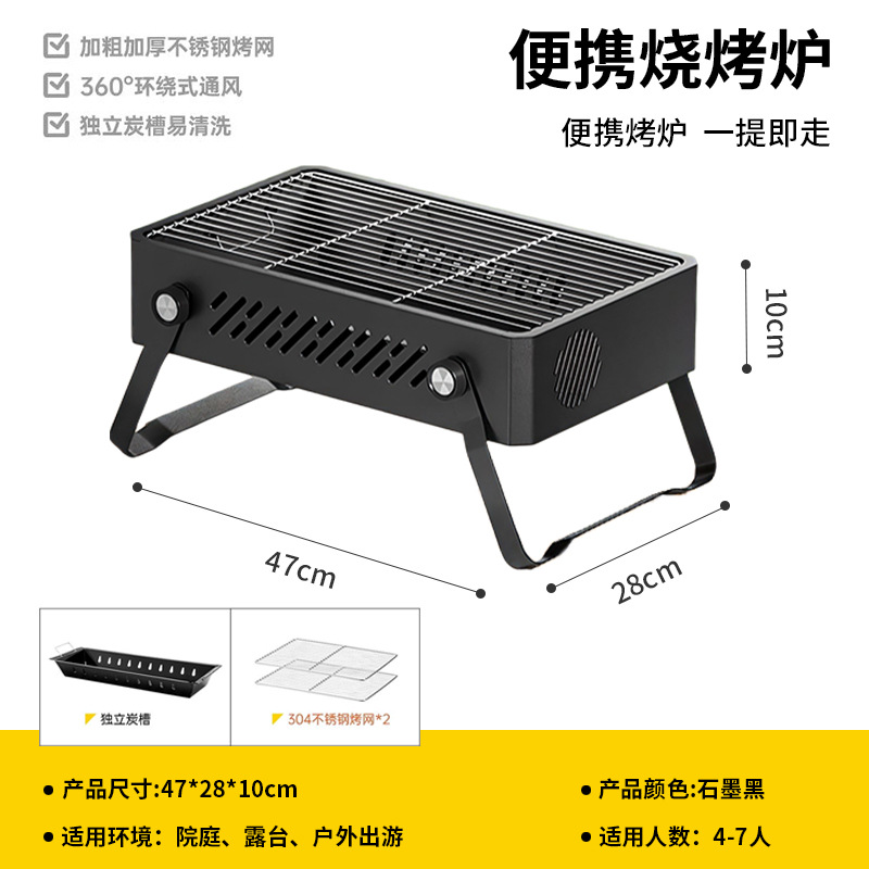 • [몇 초 만에 휴대용으로 변신] 휴대용 바베큐 그릴 흑연 블랙