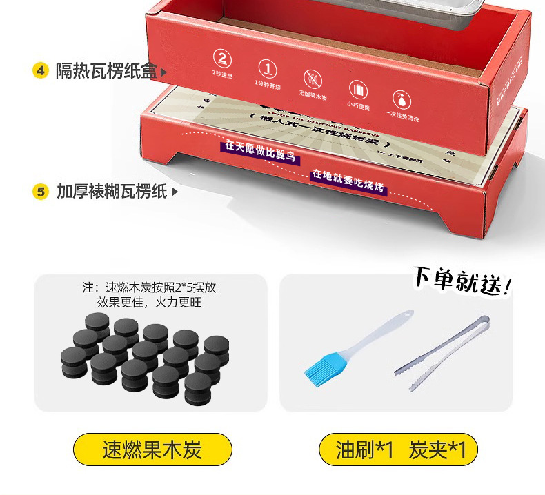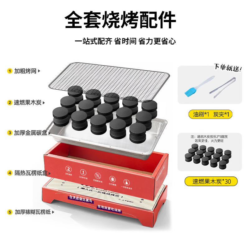 • 일회용 바베큐 그릴(무료 숯 30개 + 집게 + 브러시)