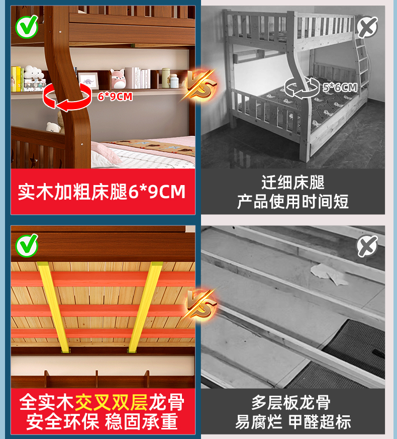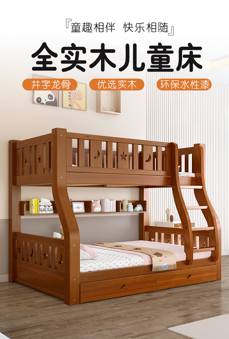 도매 전체 단단한 나무 이층 침대 이층 침대 나무 침대 높낮이 침대 이층 침대 성인 및 어린이 침대 작은 아파트