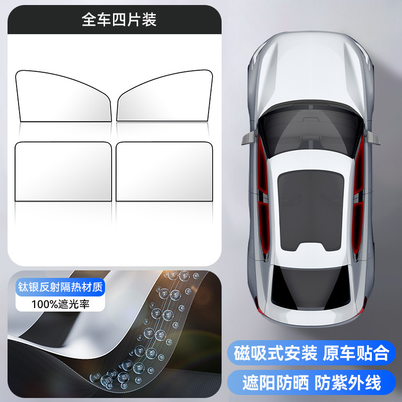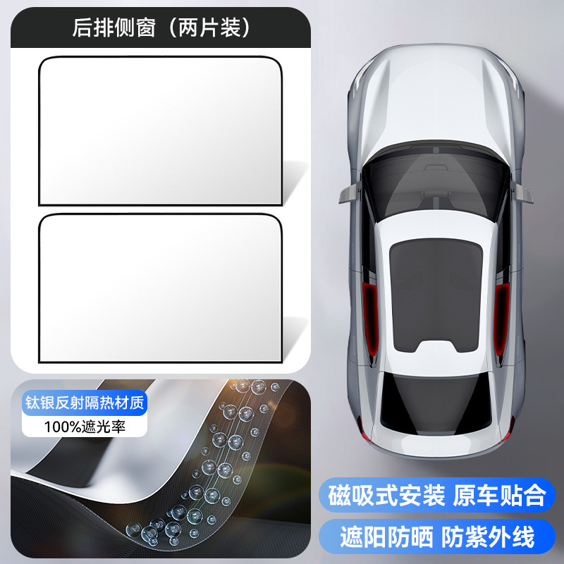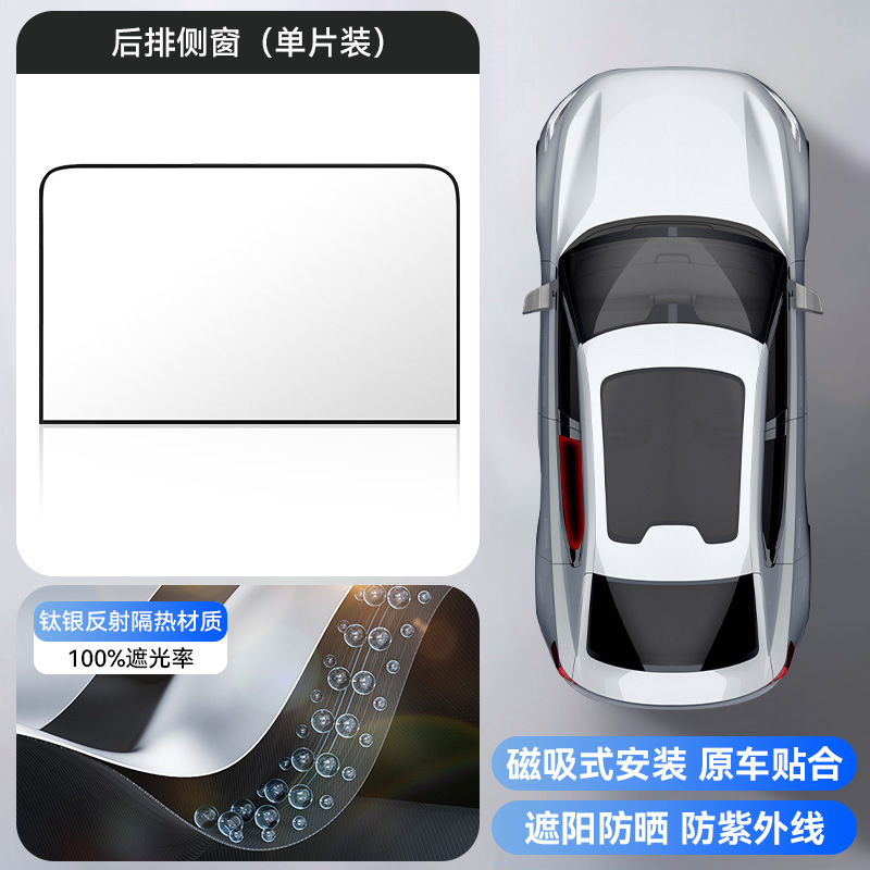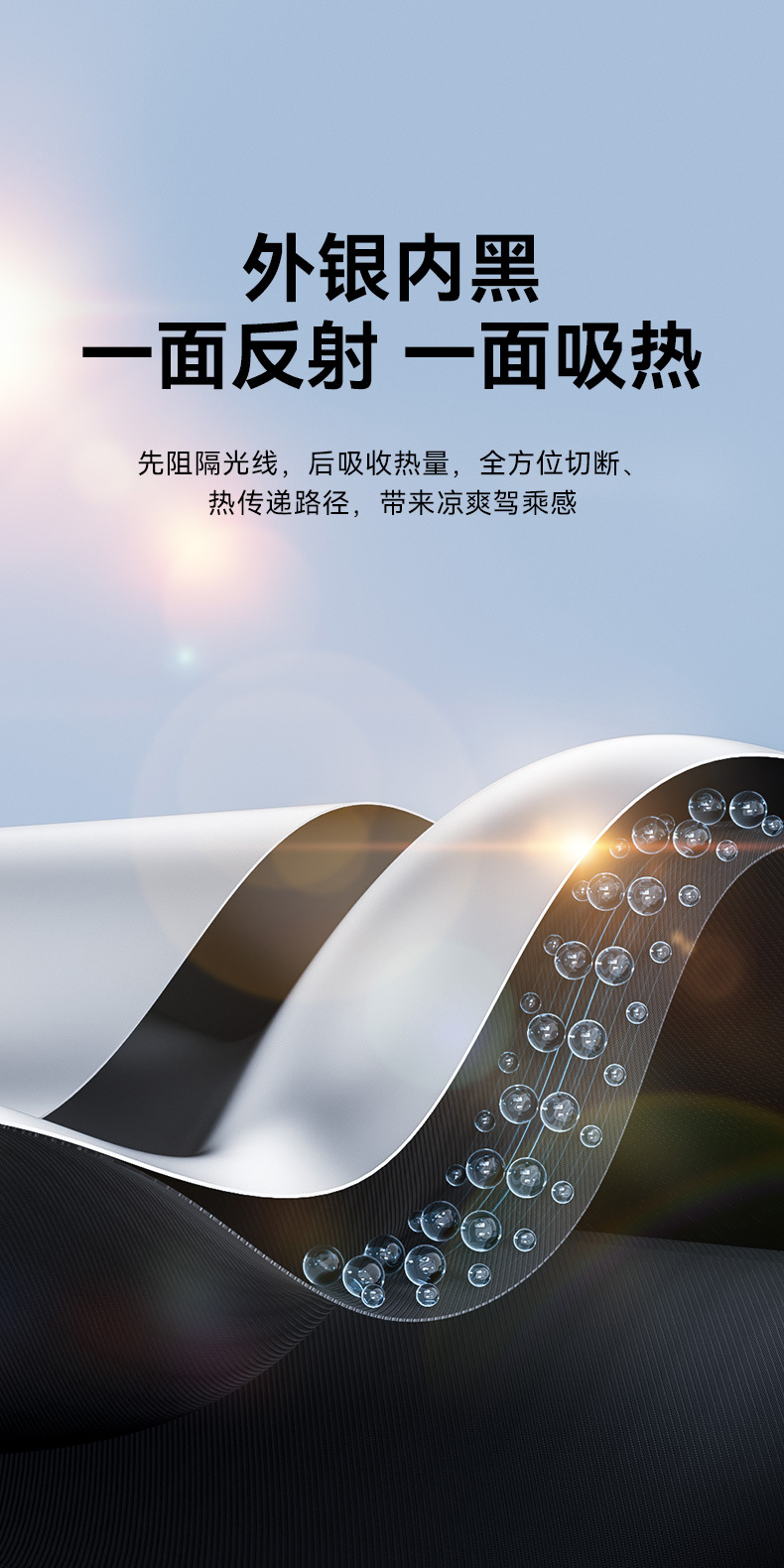 【功能用途】:用于车窗遮阳防晒,钛银材质不透光,有效隔绝紫外线预防内饰老化