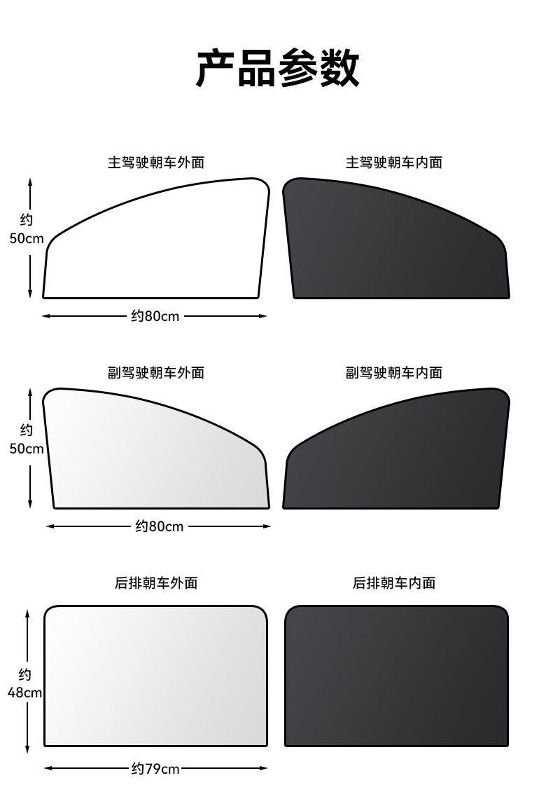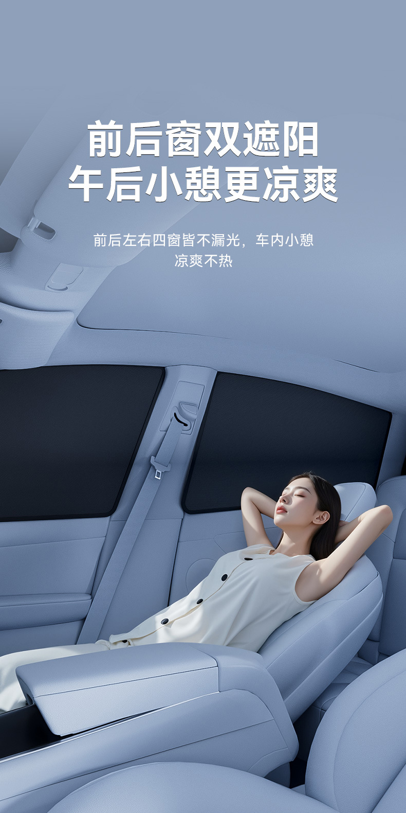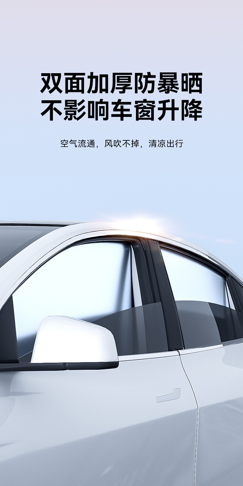 【功能用途】:用于车窗遮阳防晒,钛银材质不透光,有效隔绝紫外线预防内饰老化