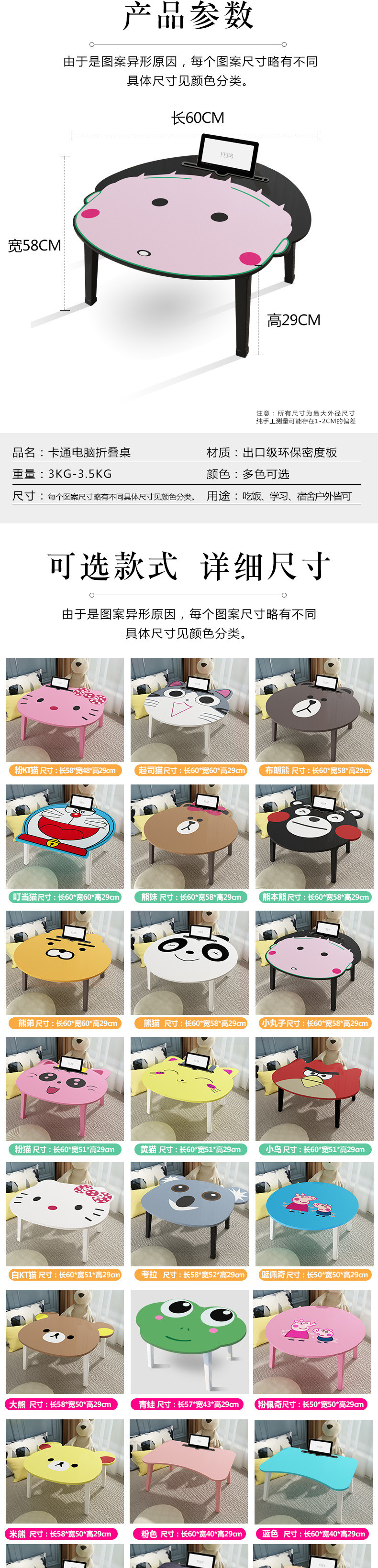 침대용 간단한 접이식 노트북 컴퓨터 테이블, 만화 작은 테이블, 학생 기숙사 책상, 식탁, 책상스토어 가기