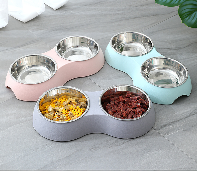 고양이 그릇, 강아지 그릇, 스테인리스 이중 그릇, 애완동물 슬로우 푸드 그릇, 강아지 물그릇, 고양이 식기, 마카롱 컬러 고양이 사료 그릇