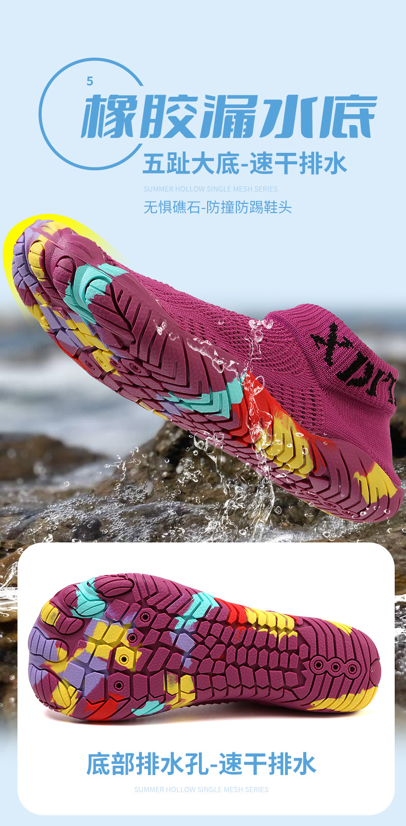 국경 간 야외 리버 트레이싱 슈즈, 낚시용 워터슈즈, 수륙양용, 절단 방지, 찌르기 방지, 빠른 건조, 물놀이용 슈즈