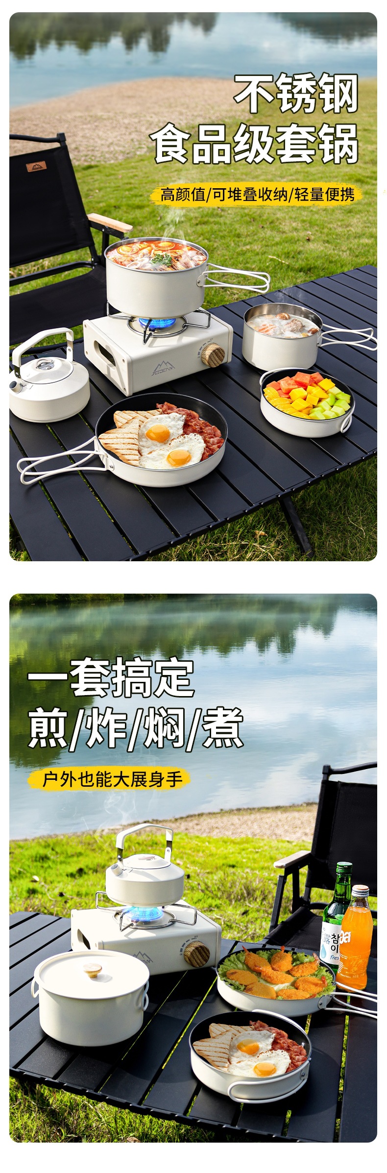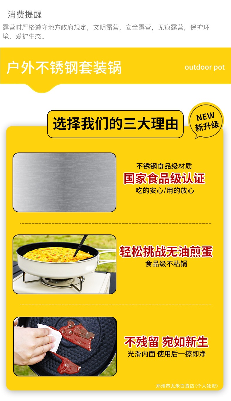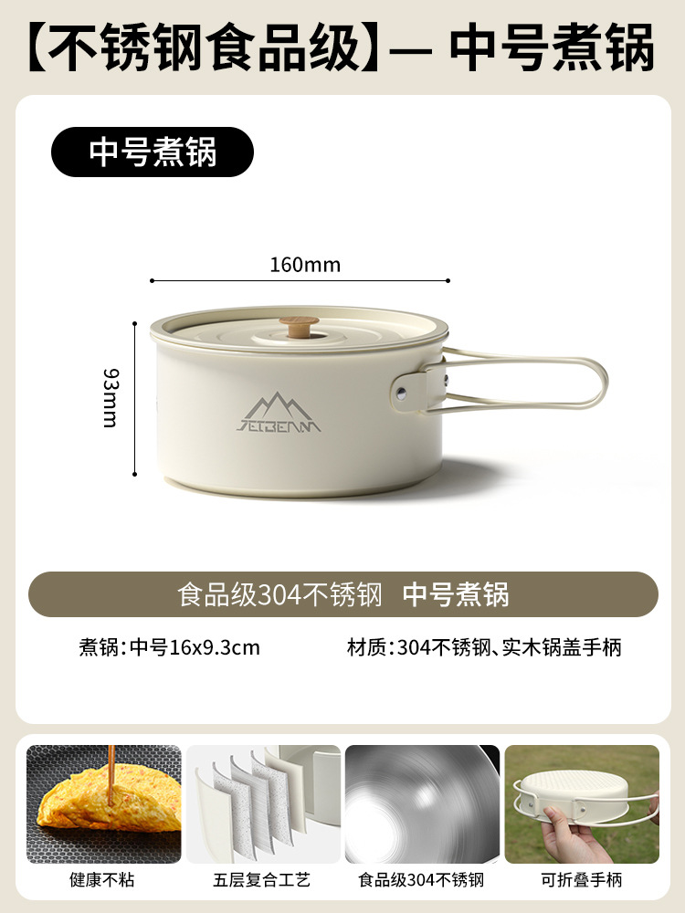 Yumi 야외 캠핑 및 피크닉 장비 캠핑 304 냄비 세트 주전자 세트 냄비 세트 캠핑 조리기구 세트스토어 가기