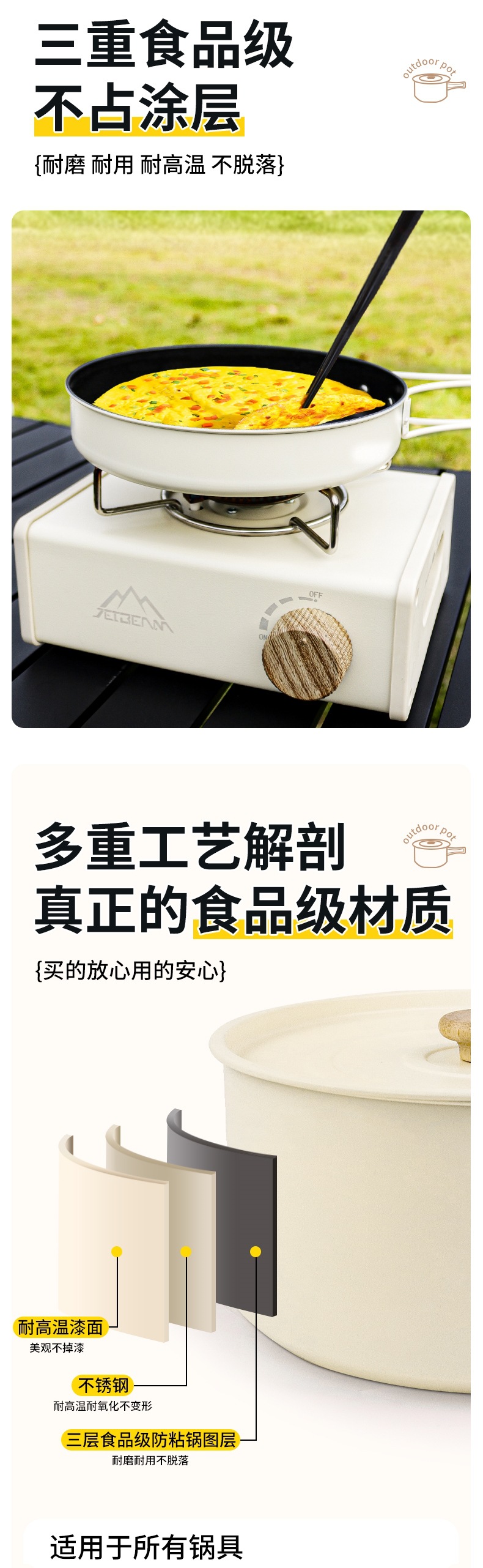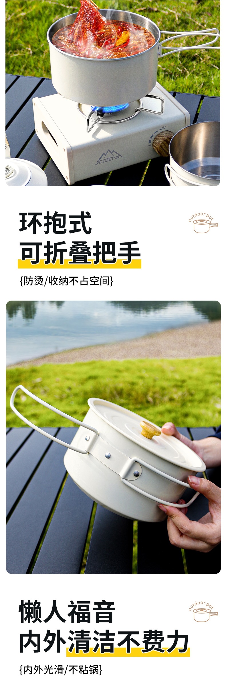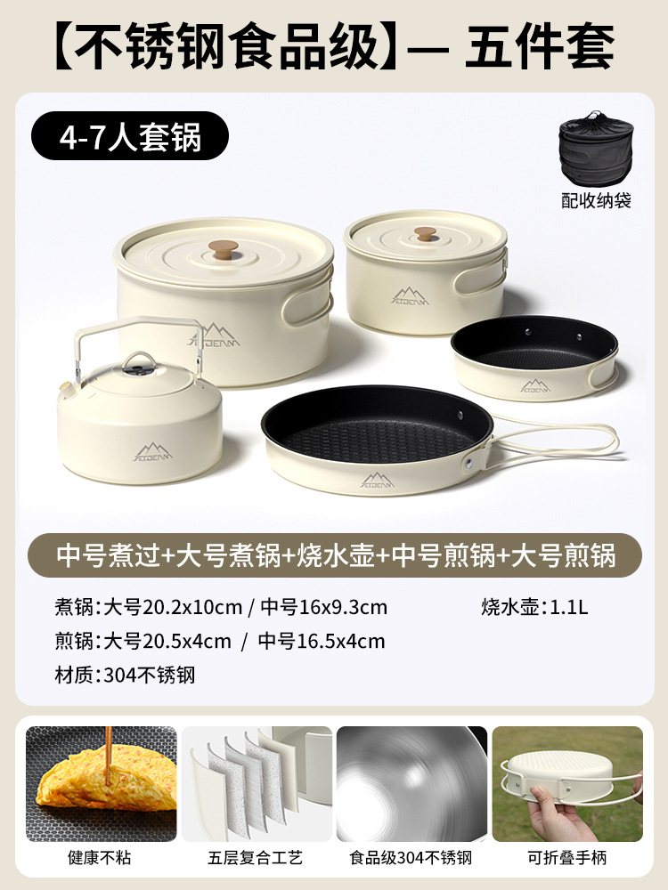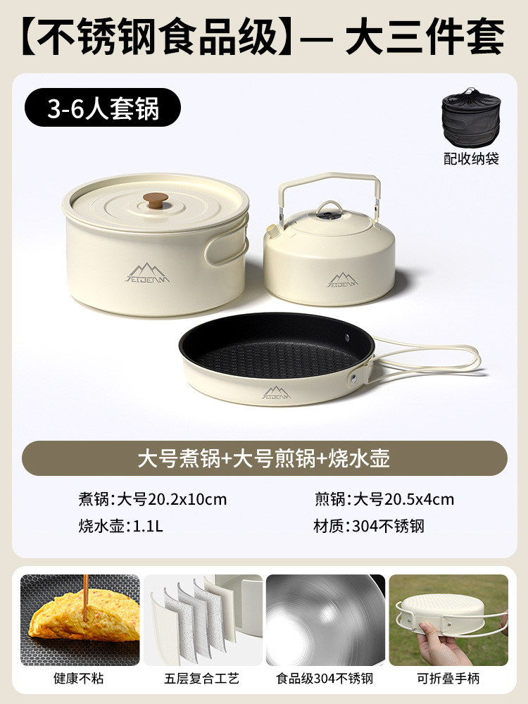 Yumi 야외 캠핑 및 피크닉 장비 캠핑 304 냄비 세트 주전자 세트 냄비 세트 캠핑 조리기구 세트