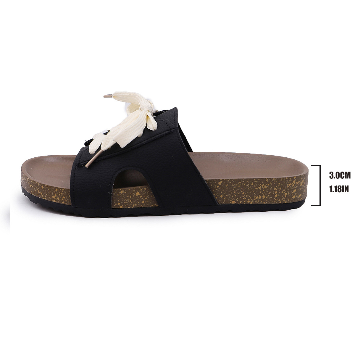 대외 무역 대형 여성용 레이스 업 슬리퍼 유럽과 미국의 국경 간 새로운 플랫 힐 로마 샌들 두꺼운 밑창 비치 슈즈