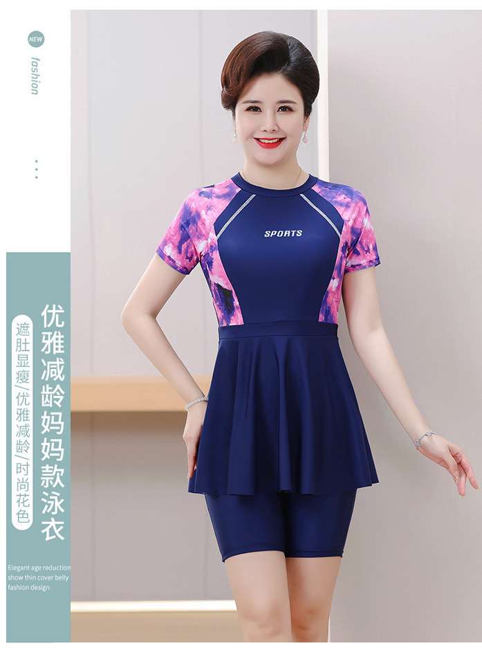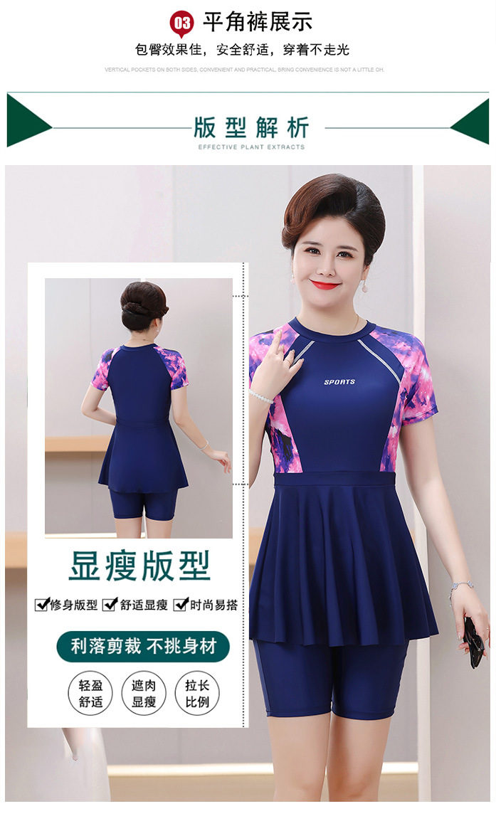 중노년 여성을 위한 엄마 수영복, 살과 배를 커버해 날씬해 보이고, 보수적인 스플릿 라지 사이즈 5부 팬츠, 온천욕에 패셔너블스토어 가기