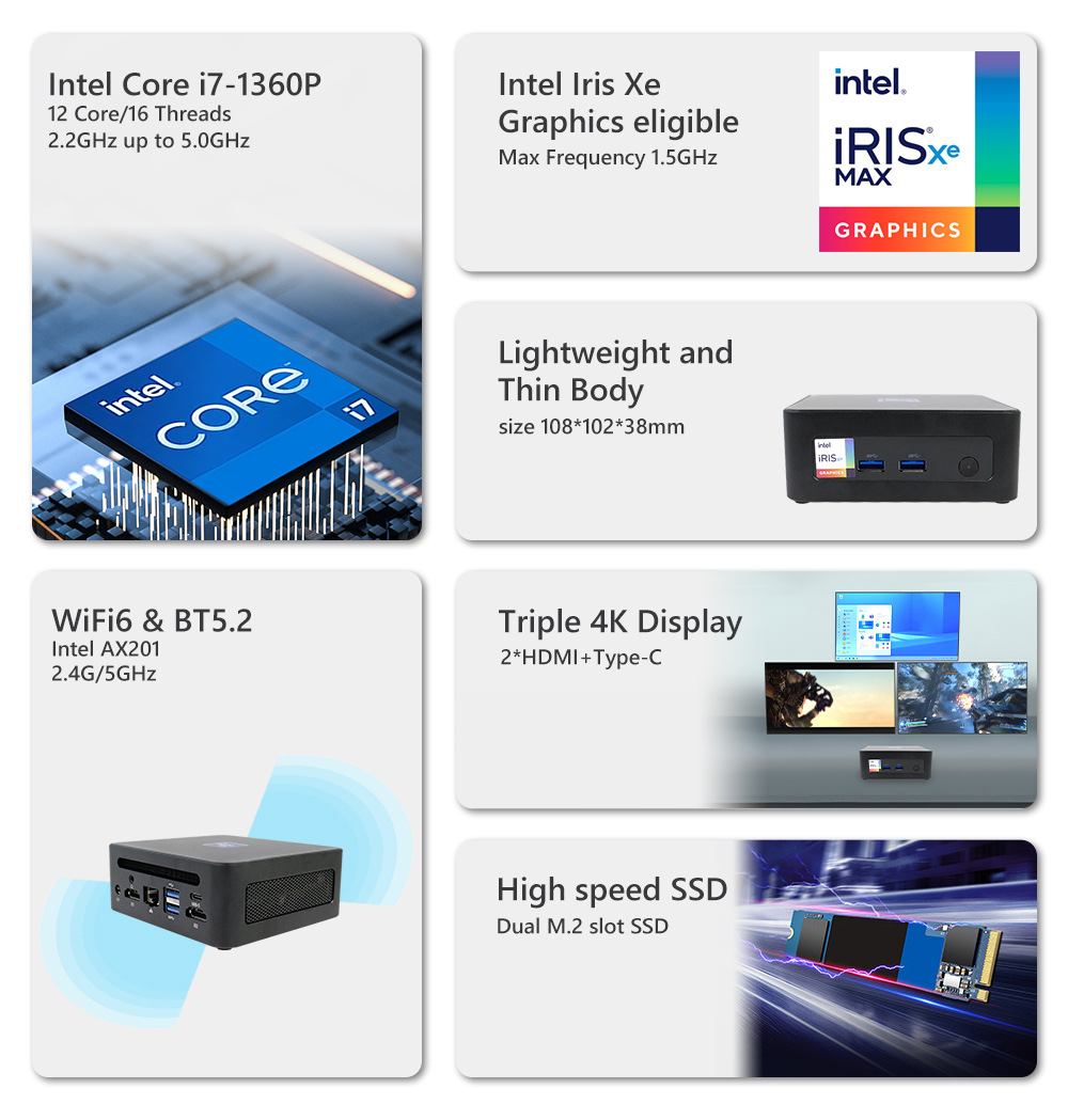 EGLOBAL 미니 컴퓨터 코어 4K 디스플레이 홈 오피스 컴퓨터 미니 컴퓨터 마이크로 컴퓨터 minipc스토어 가기