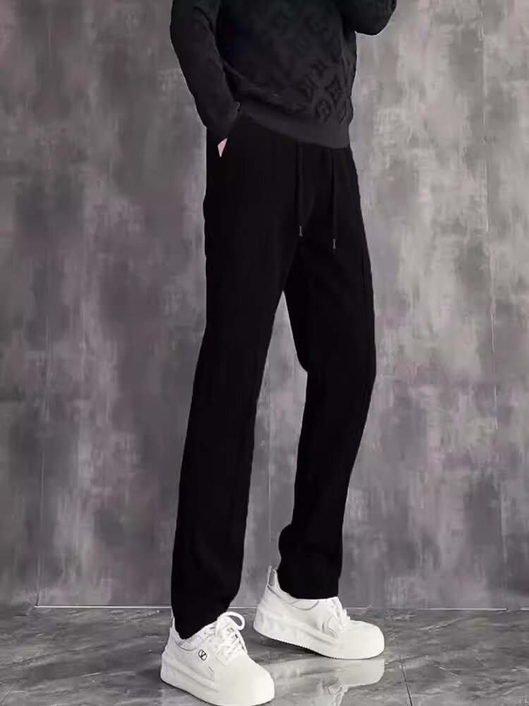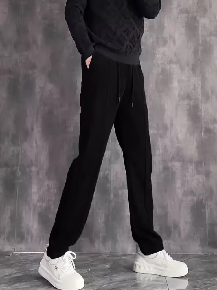 남성 드레이프 슬림 스트레이트 팬츠 봄, 가을 심플 솔리드 컬러 캐주얼 바지 다용도 스트레치 라이트 럭셔리 스웨트 팬츠스토어 가기