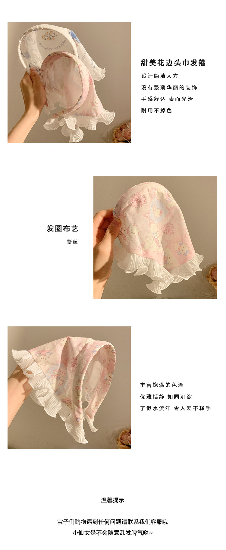 베이지 레이스 헤어 밴드 헤드 스카프 원피스 프렌치 트라이앵글 타월 토 스퀘어 모자 목회 스타일 여성용 헤어 액세서리