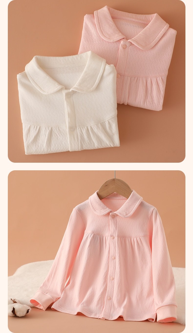 봄과 가을 소년과 소녀 셔츠 코튼 클래스 아기 긴 소매베이스 티셔츠 어린이 카디건 탑 화이트 싱글웨어