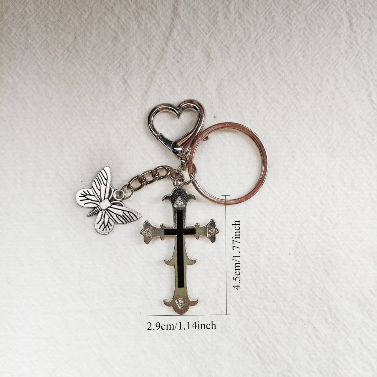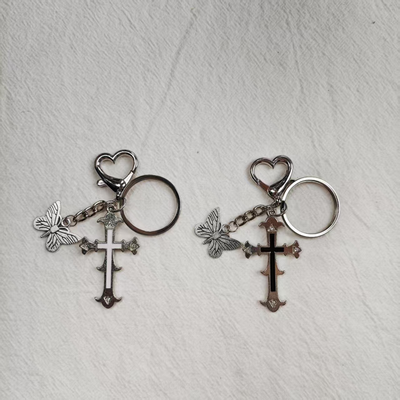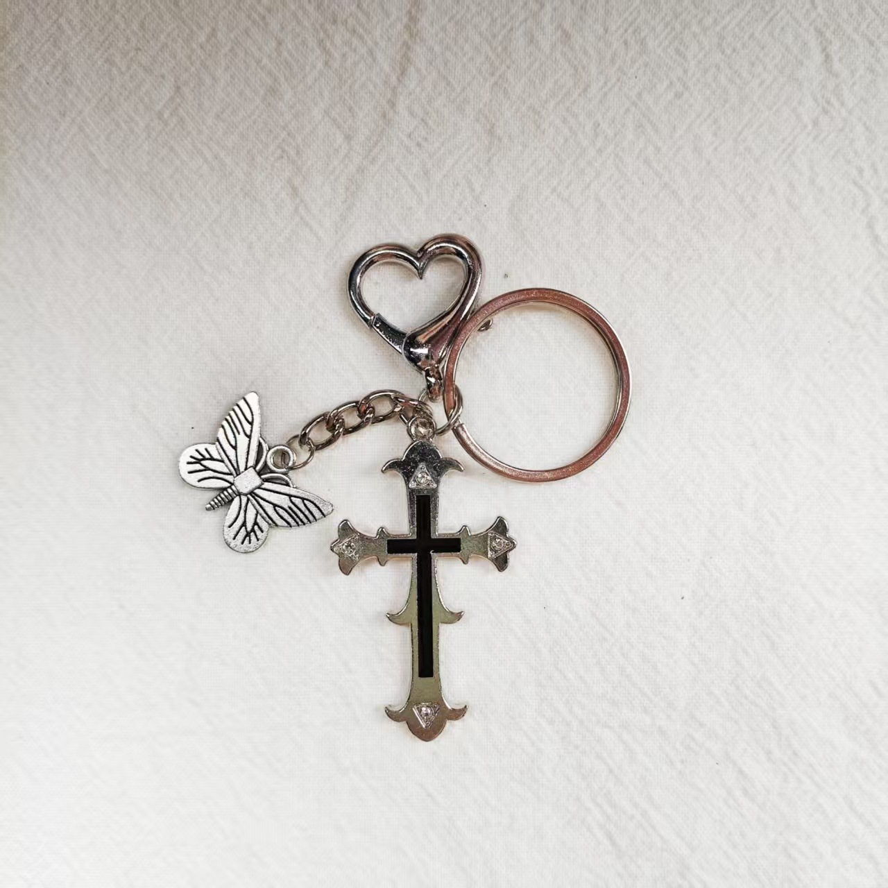 패션 성격 틈새 디자인 미국 스타일 레트로 플래시 다이아몬드 크로스 간단한 키 체인 가방 펜던트