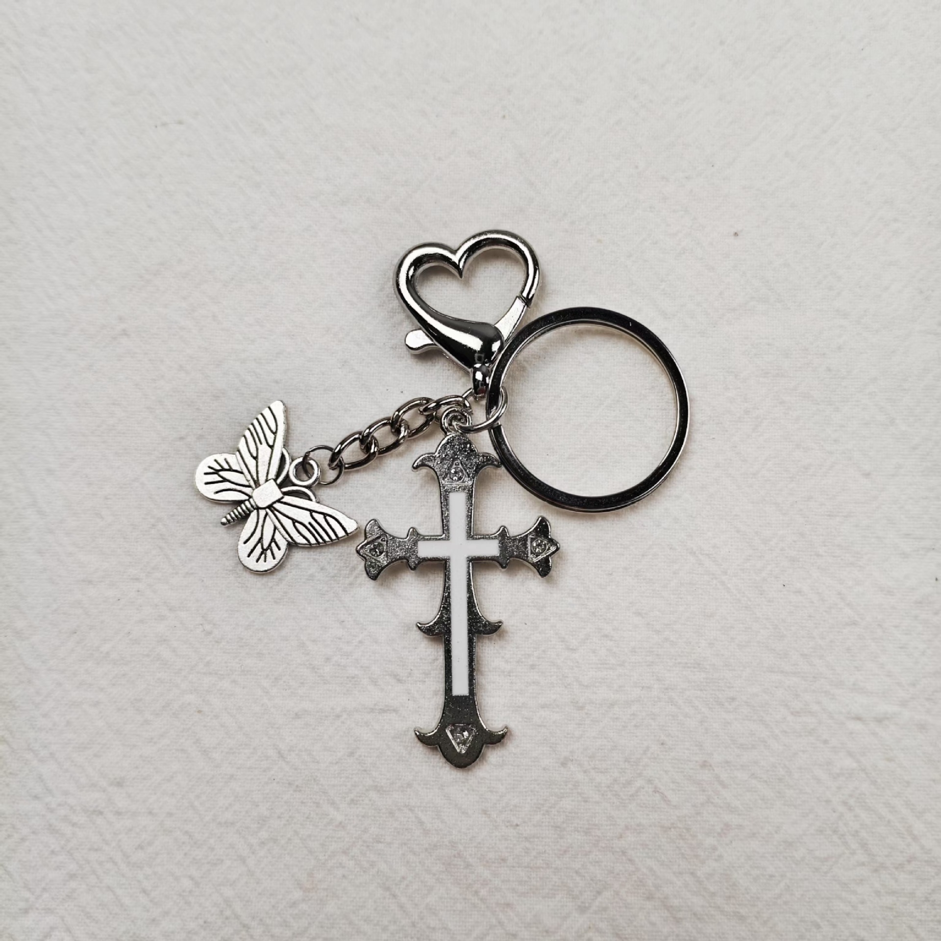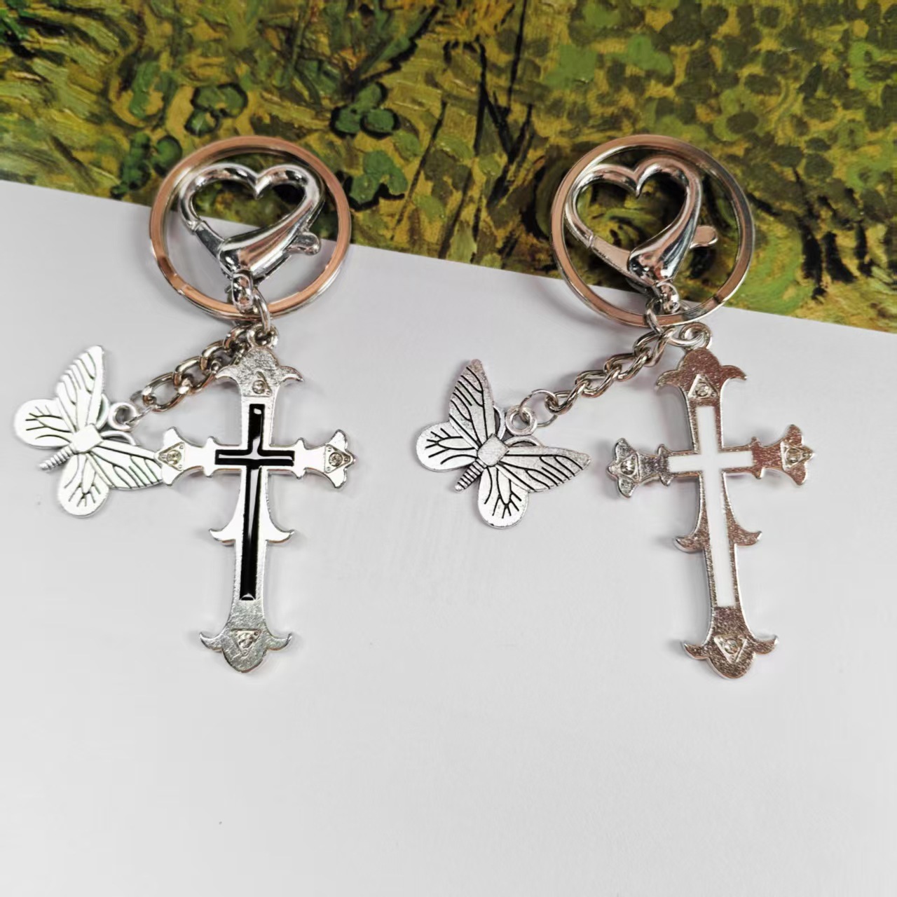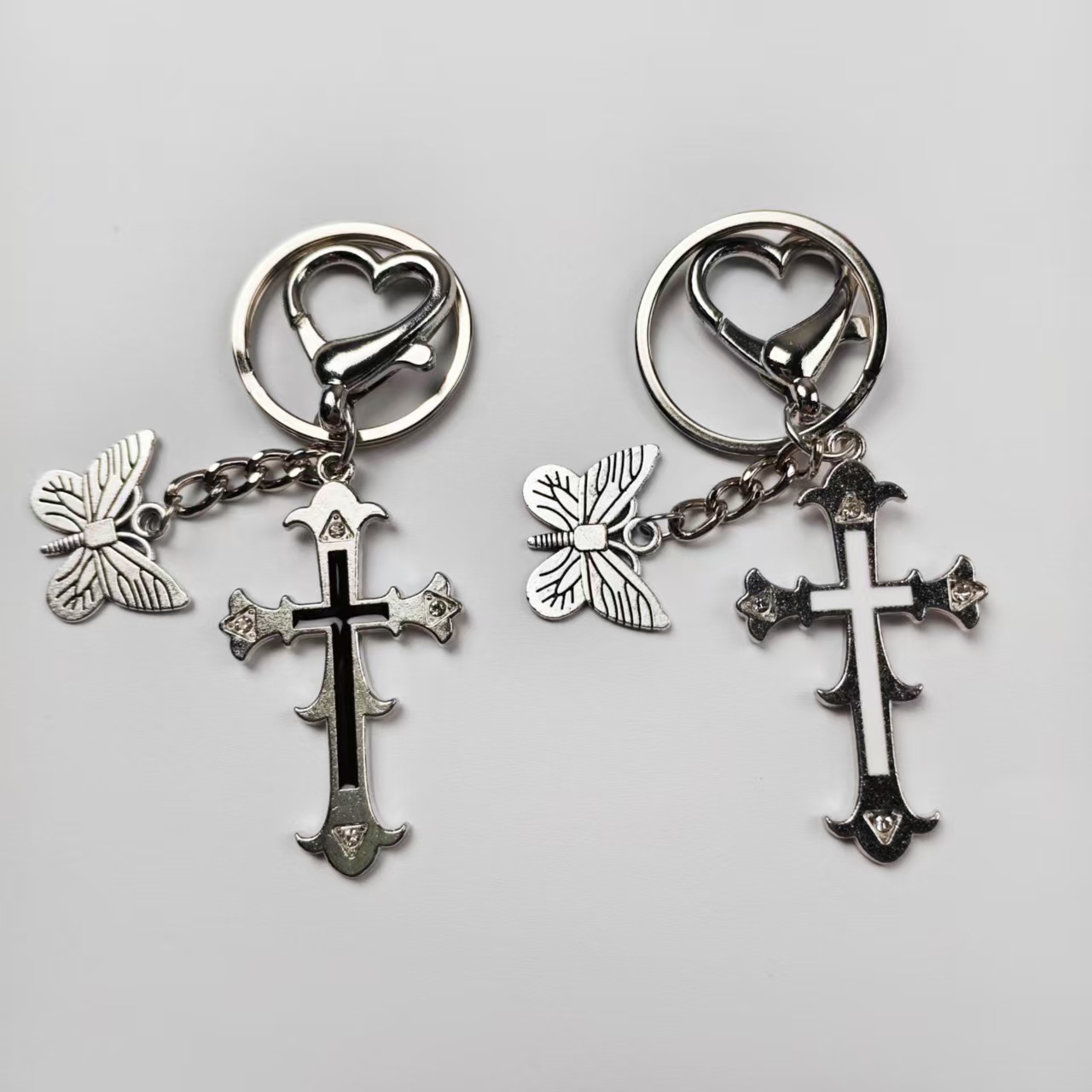 패션 성격 틈새 디자인 미국 스타일 레트로 플래시 다이아몬드 크로스 간단한 키 체인 가방 펜던트