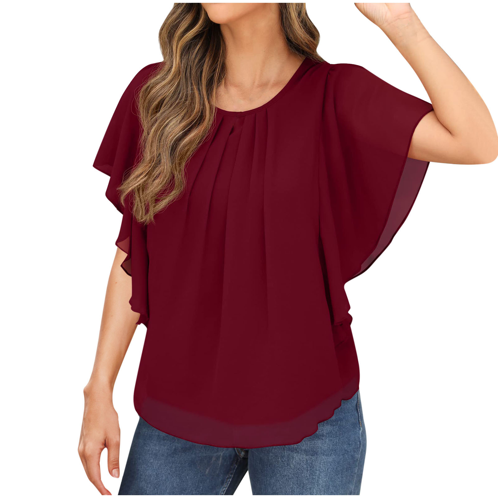 유럽과 미국의 국경을 넘나드는 여성용 라운드넥 쉬폰 셔츠, 플러스 사이즈 여성복 100kg 뱃살을 커버하고 슬림해 보이는 루즈핏 단색 우아한 출퇴근룩스토어 가기