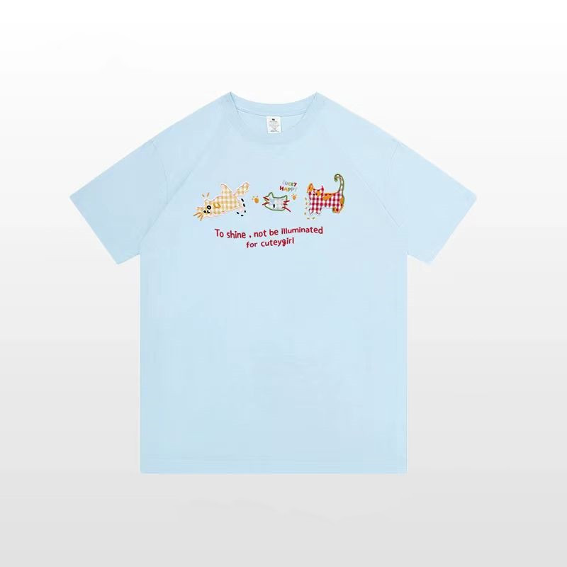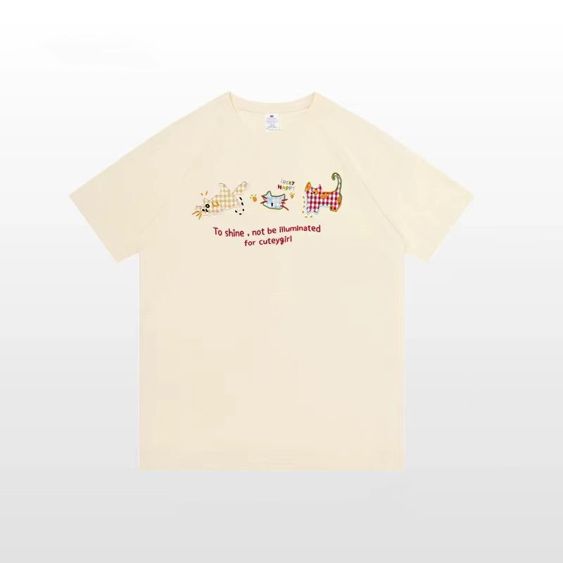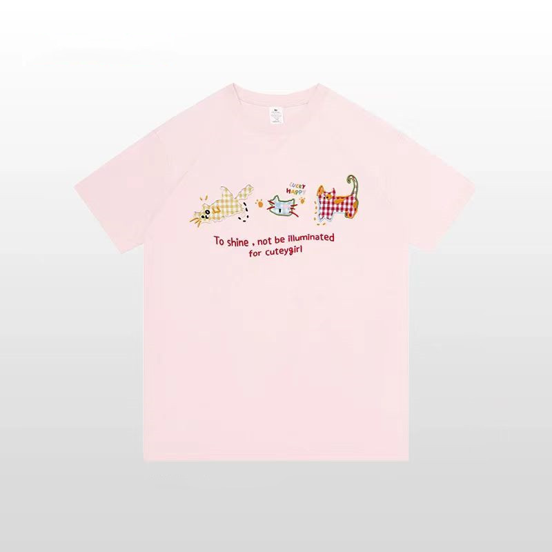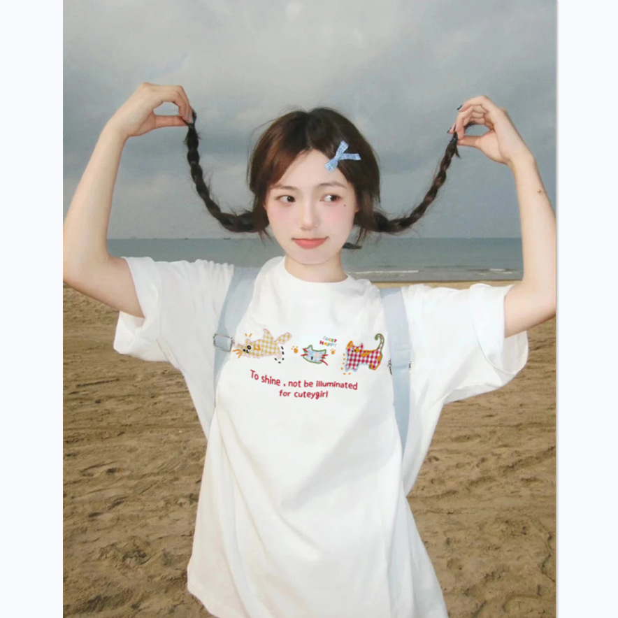 2025 새로운 도착 올매치 화이트 반팔 티셔츠 여름 여성의 순면 루즈 탑 인 여름 게으른 스타일 통통스토어 가기