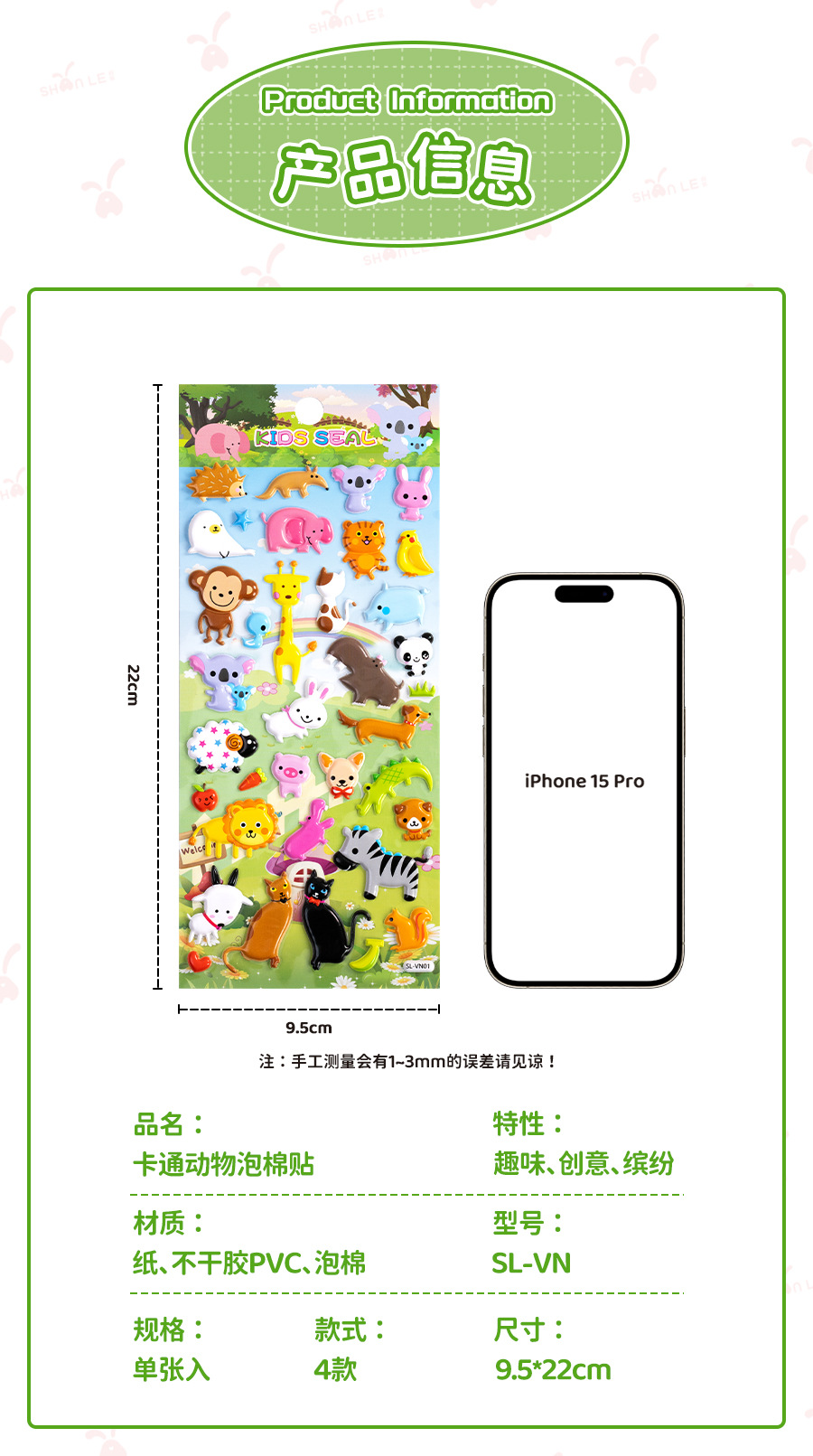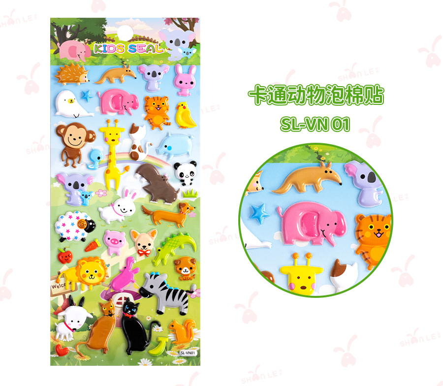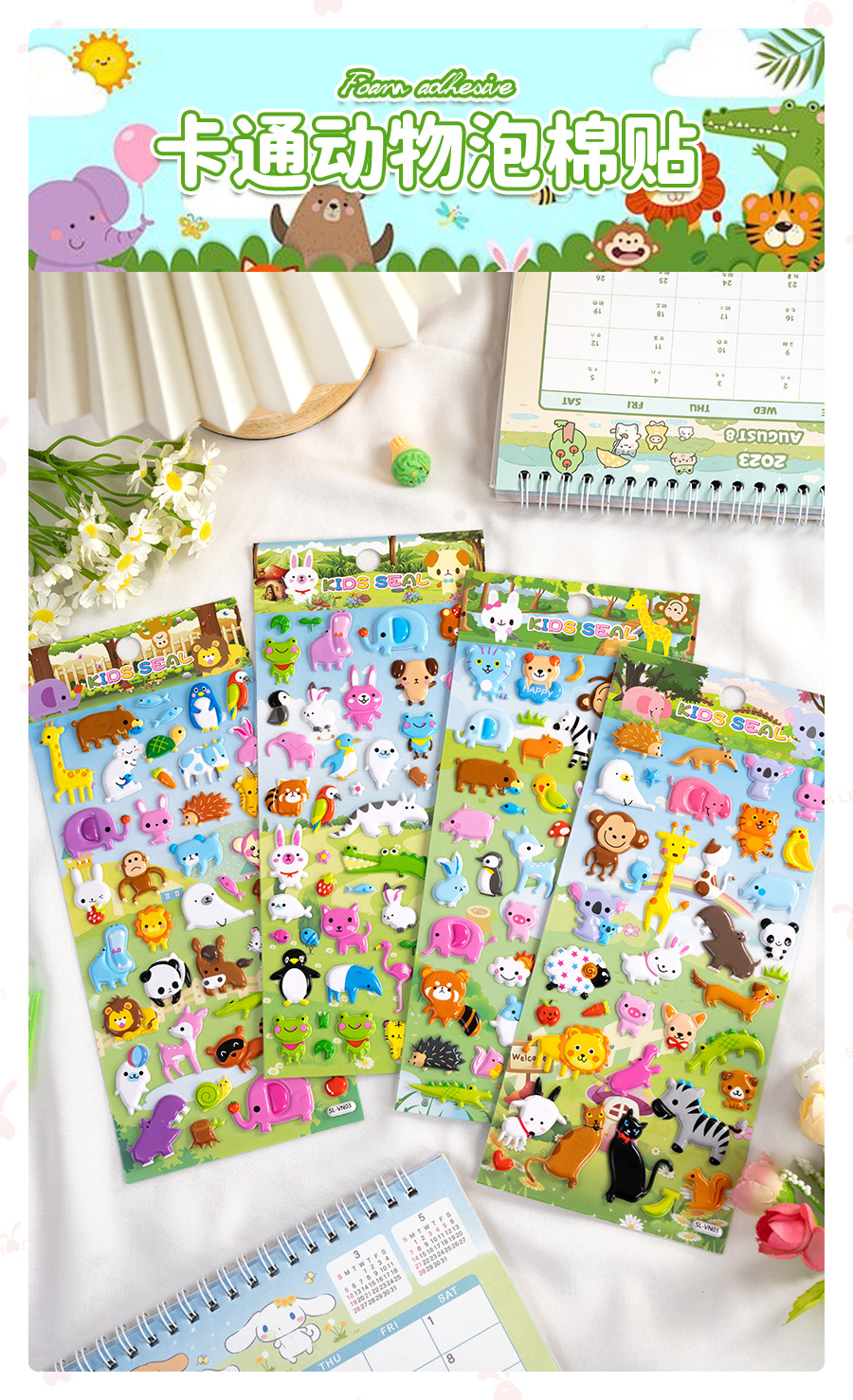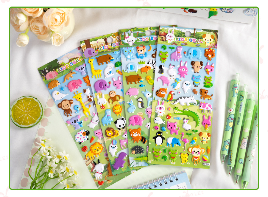 어린이 만화 동물 3D 스티커 귀여운 3 차원 조기 교육 교육 수제 아기 상 앨범 책 장식 스티커