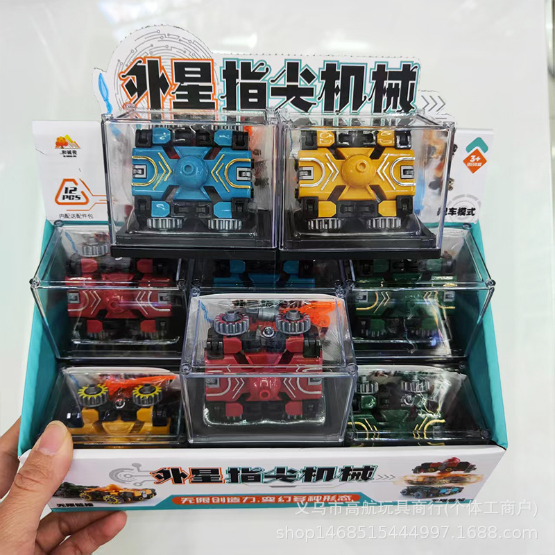 외계인 착륙 차량 기계적 손가락 끝 자이로 변형 로봇 전사 어린이 아크릴 감압 나선형 장난감스토어 가기