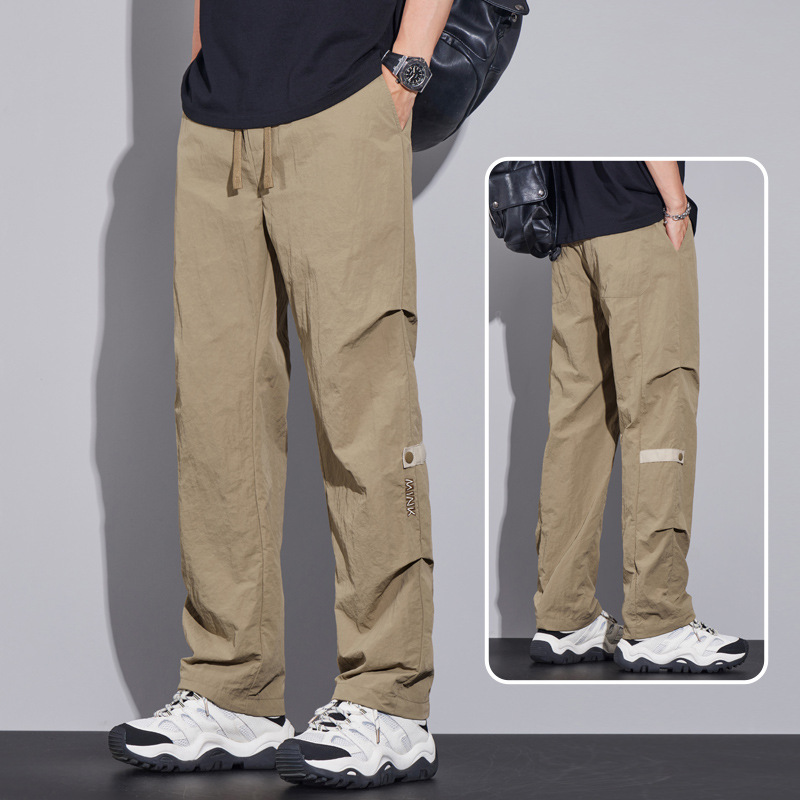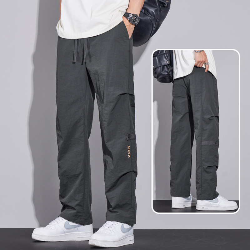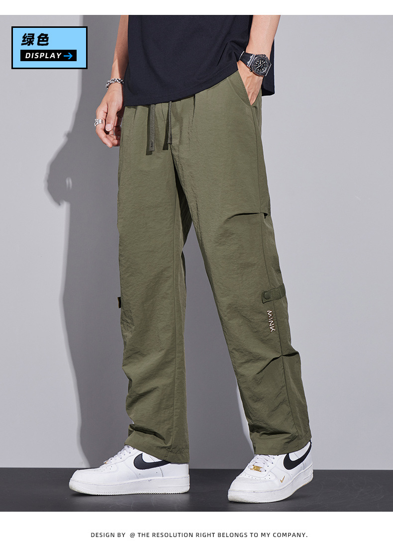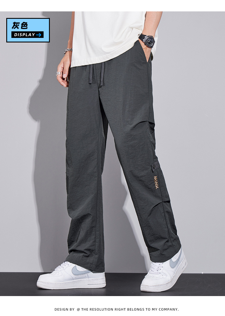 남성용 오버올 루즈 스트레이트 여름 얇은 속건성 남성용 바지 여름 충전 바지 남성용 아이스 실크 캐주얼 바지