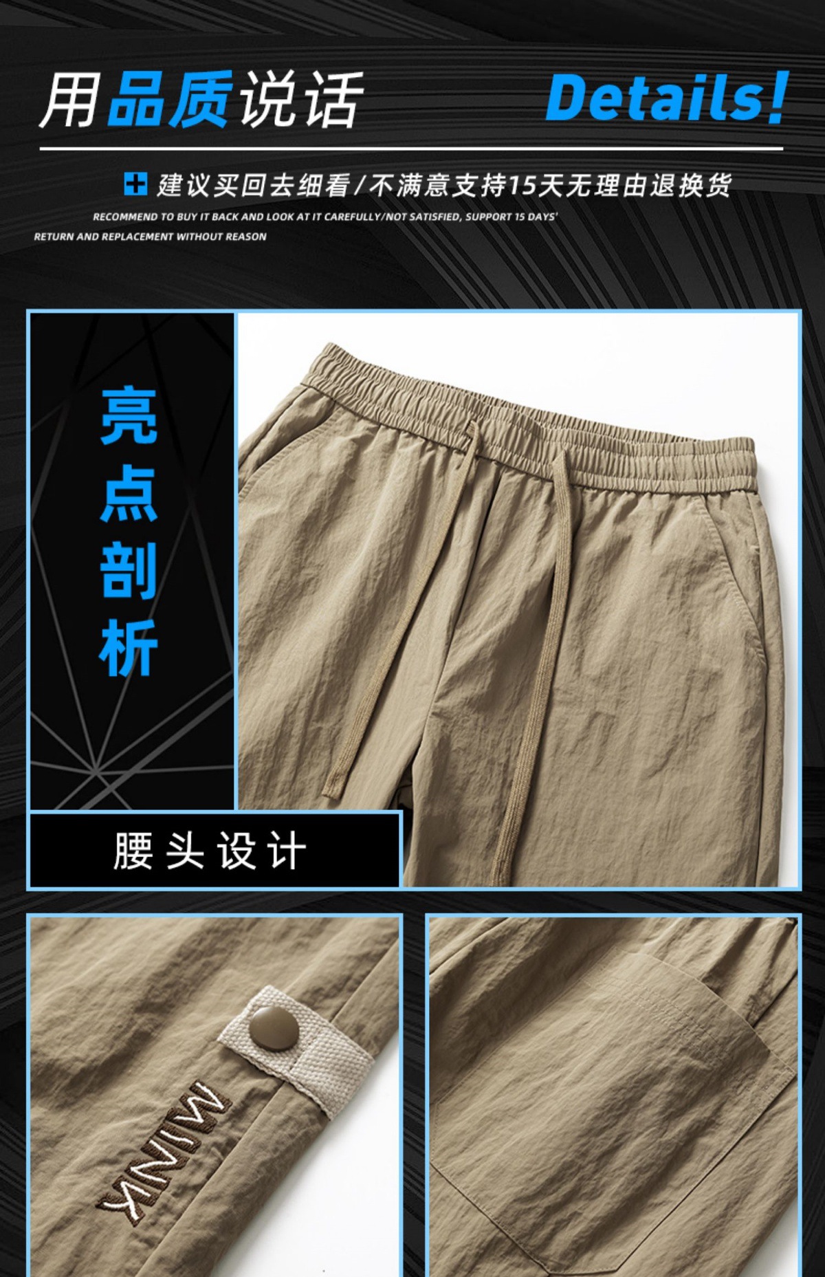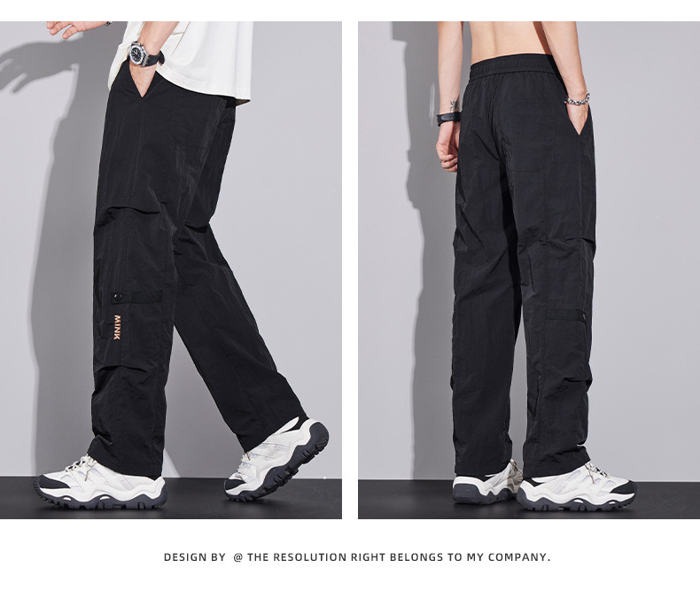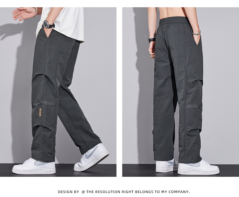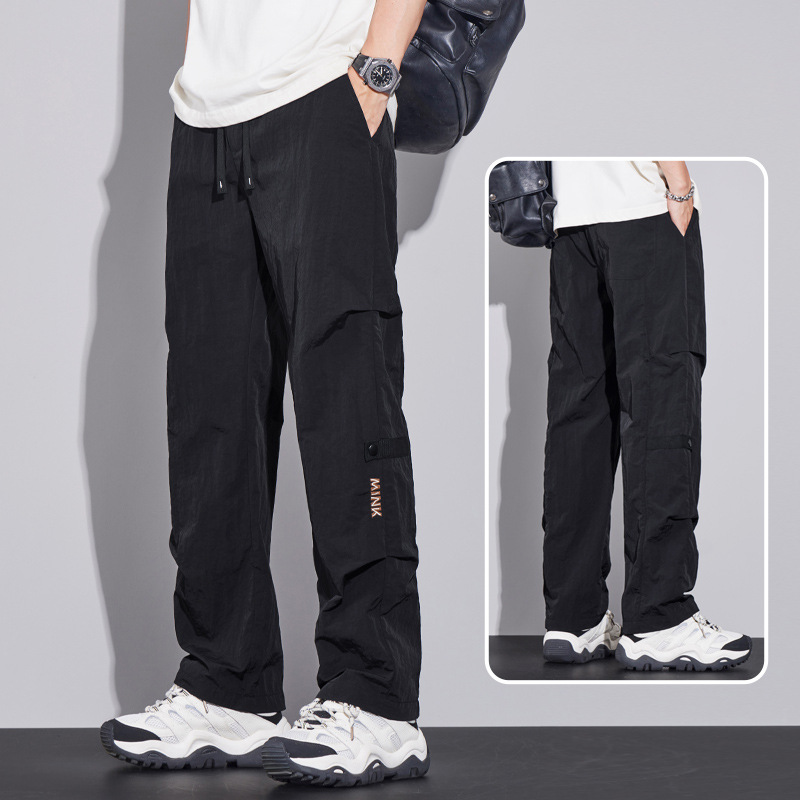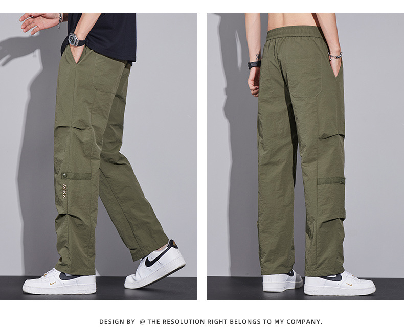남성용 오버올 루즈 스트레이트 여름 얇은 속건성 남성용 바지 여름 충전 바지 남성용 아이스 실크 캐주얼 바지