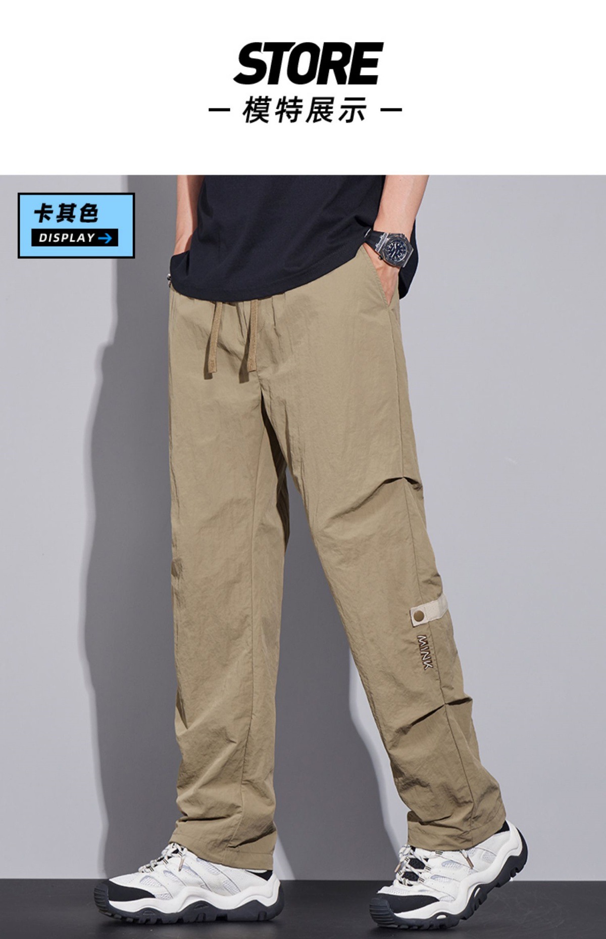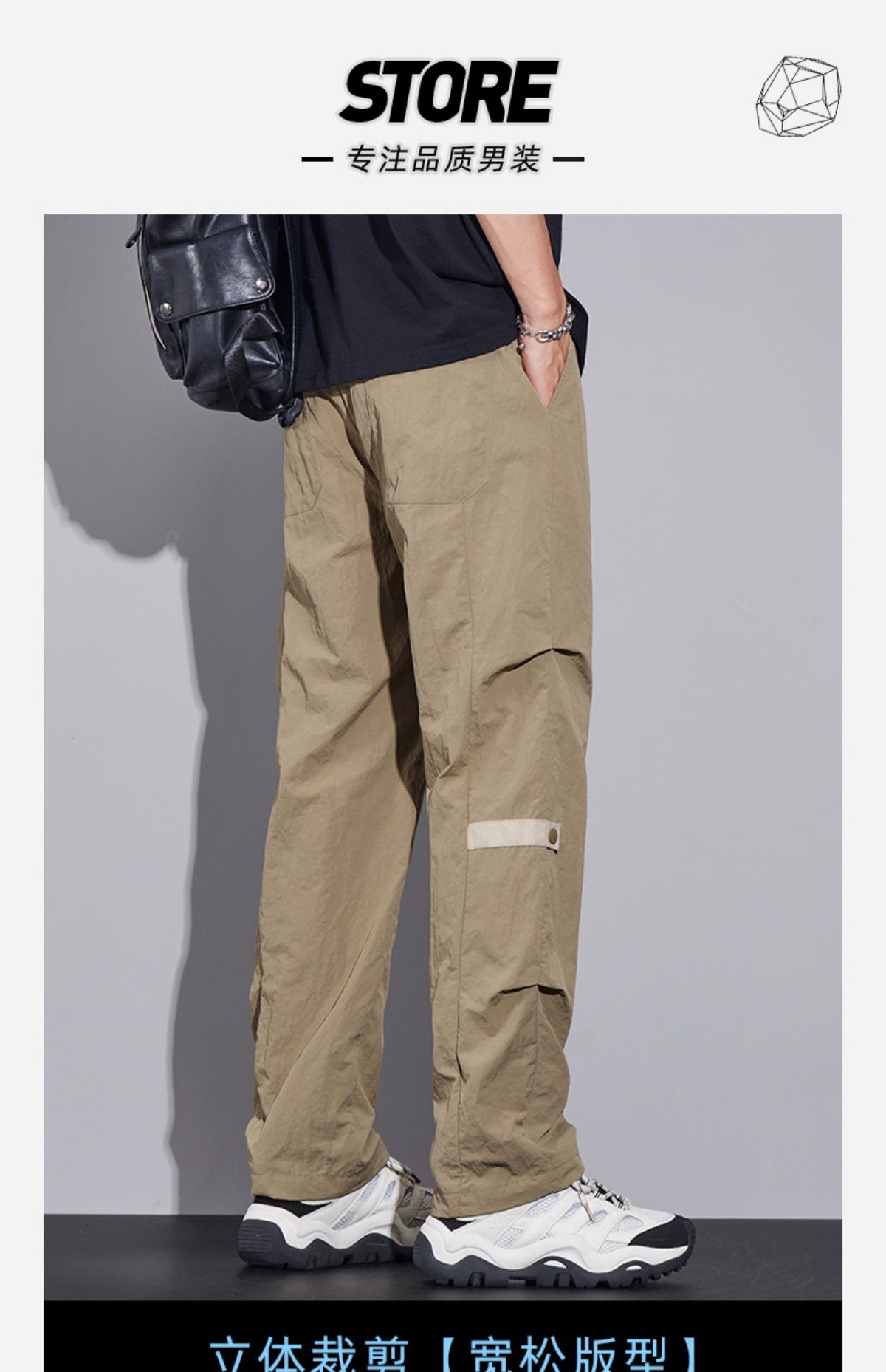 남성용 오버올 루즈 스트레이트 여름 얇은 속건성 남성용 바지 여름 충전 바지 남성용 아이스 실크 캐주얼 바지스토어 가기