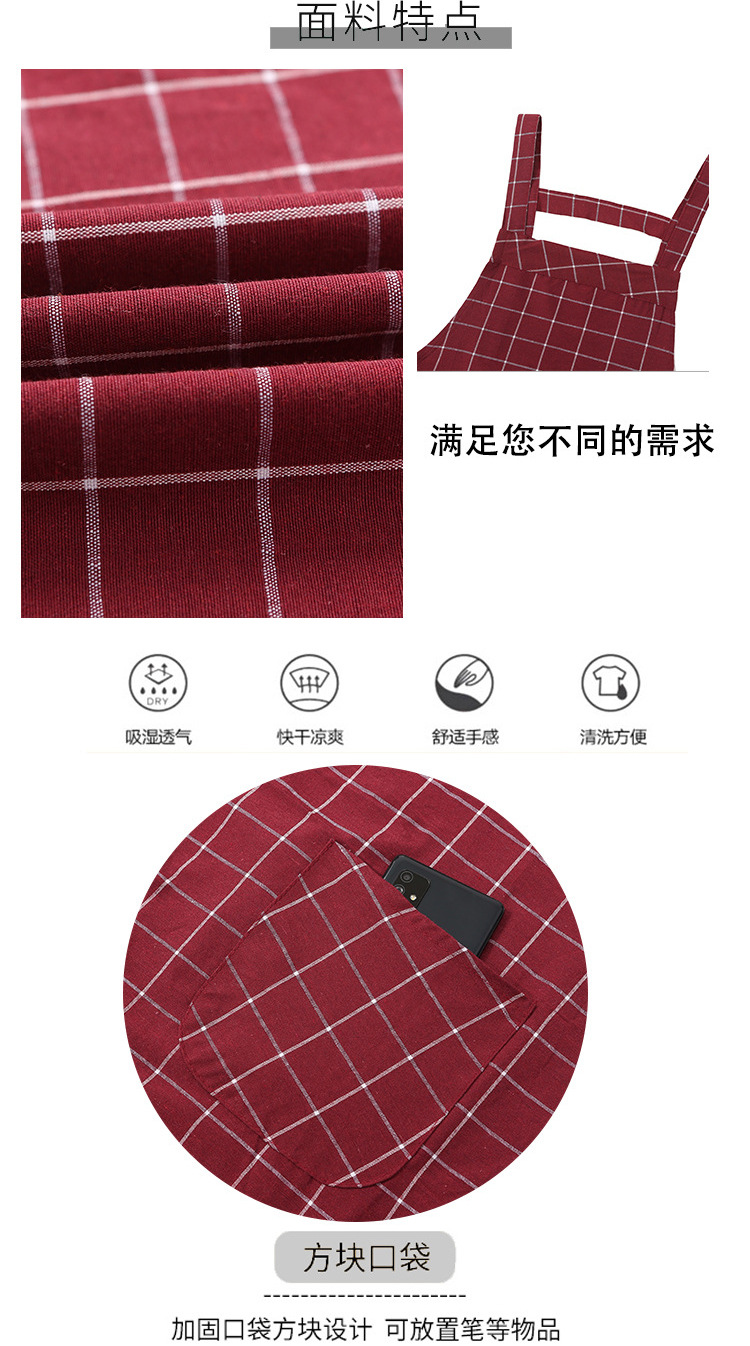 2025 새로운 스타일 앞치마 여성 순수 면화 거친 천 방수 작업복 성인 가정용 주방 요리 작업복