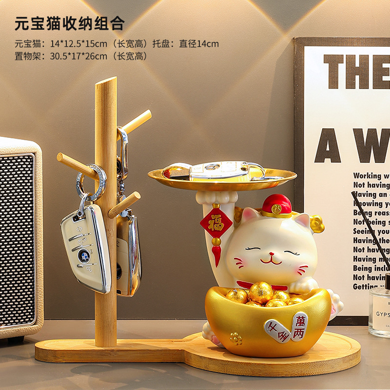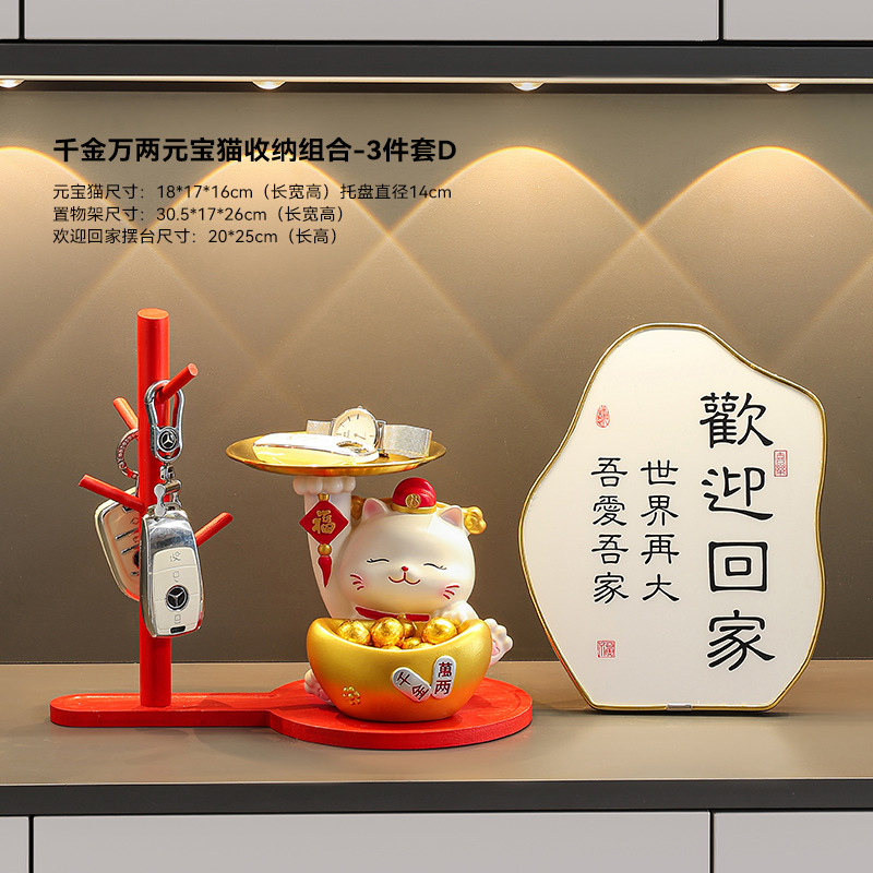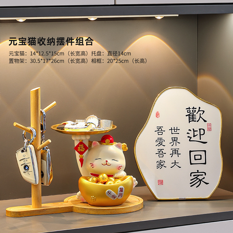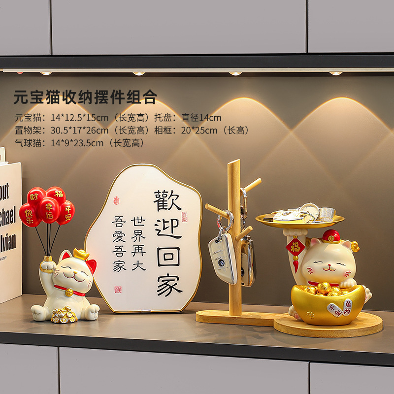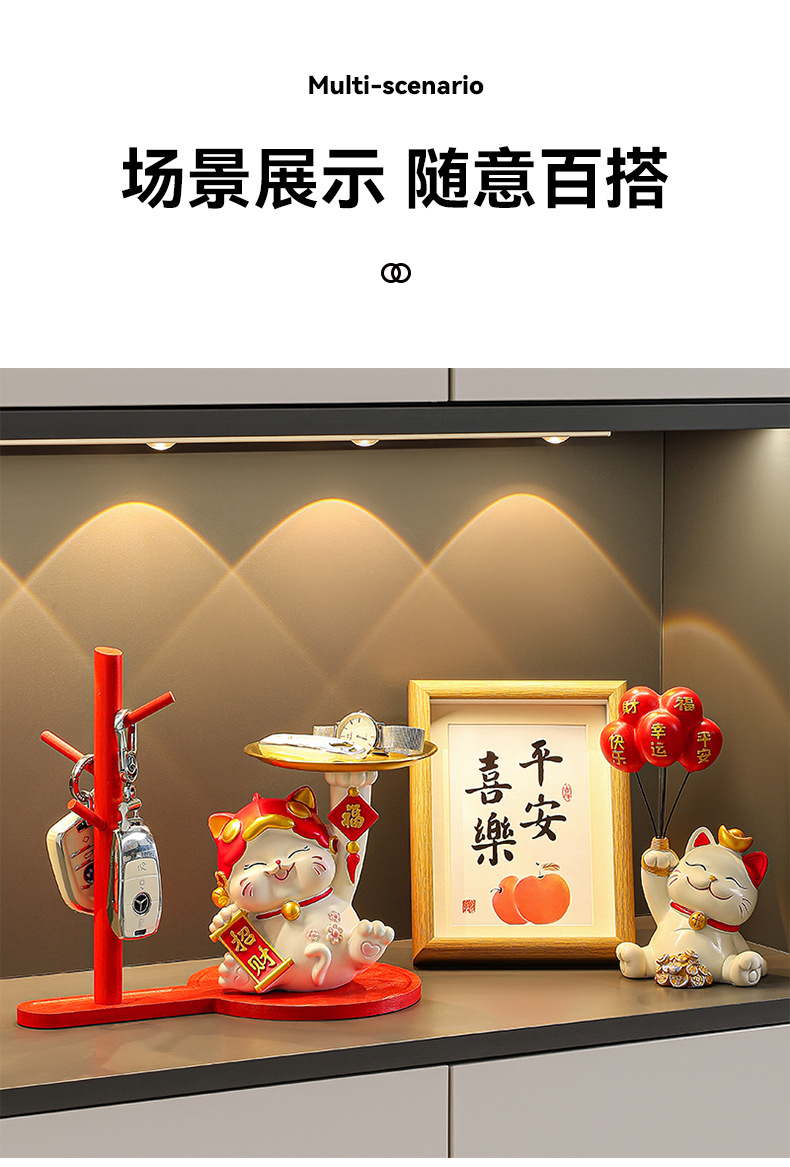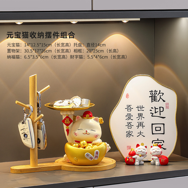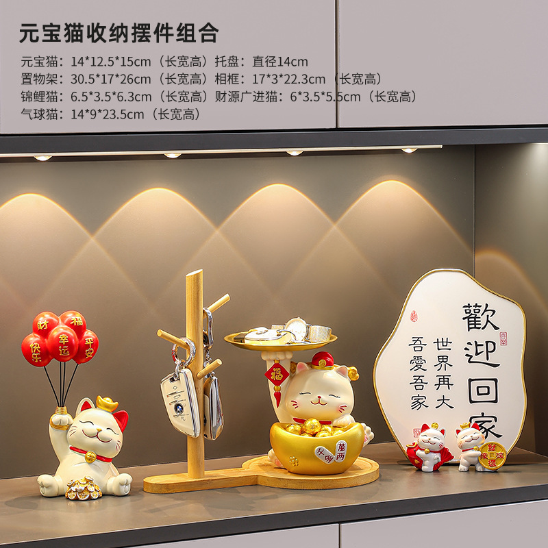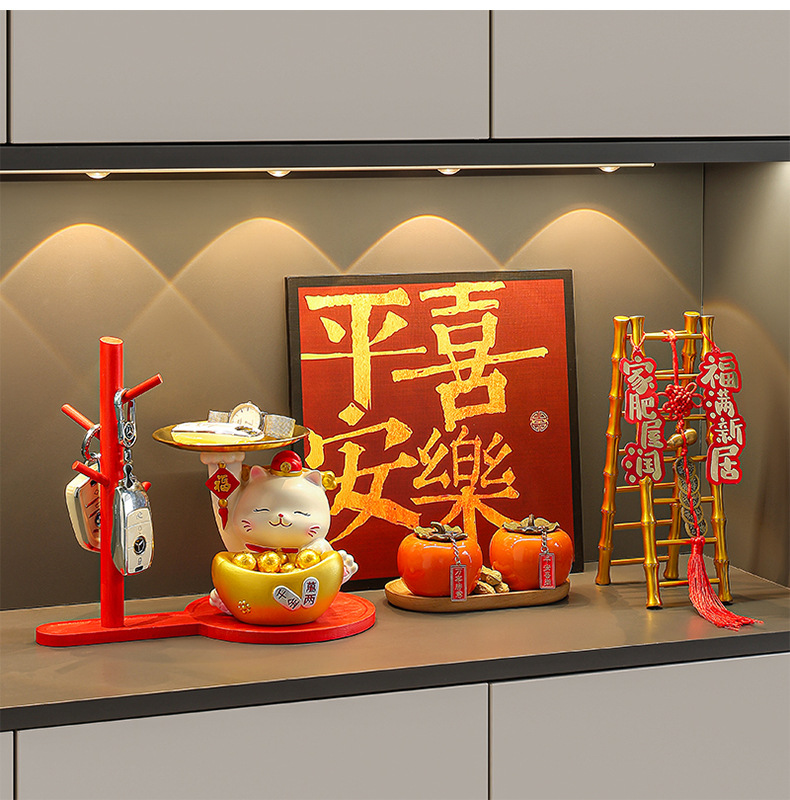 럭키 고양이 키 스토리지 복도 장식품 새해 장식 새 집 배열 이동 홈 선물 완료 세트로 이동
