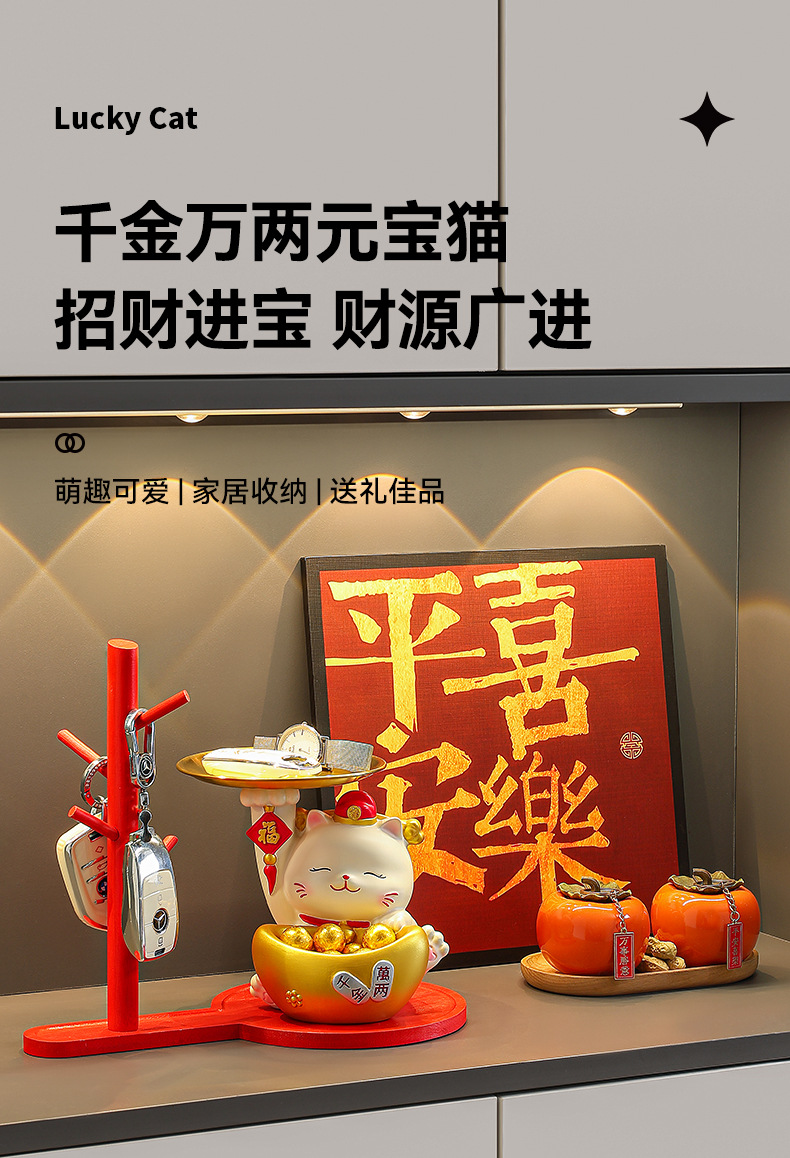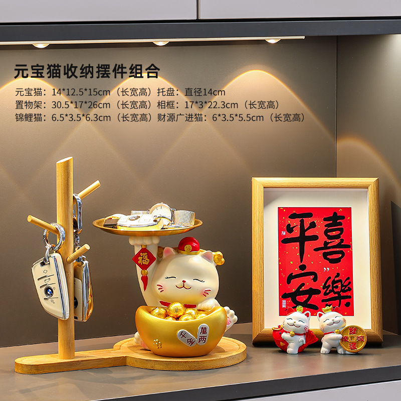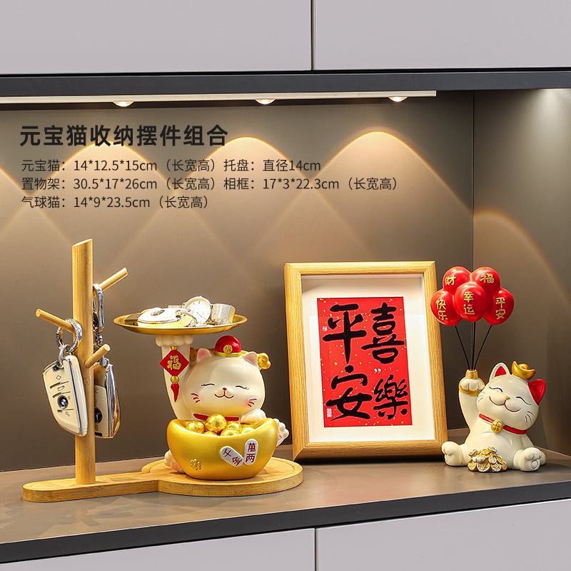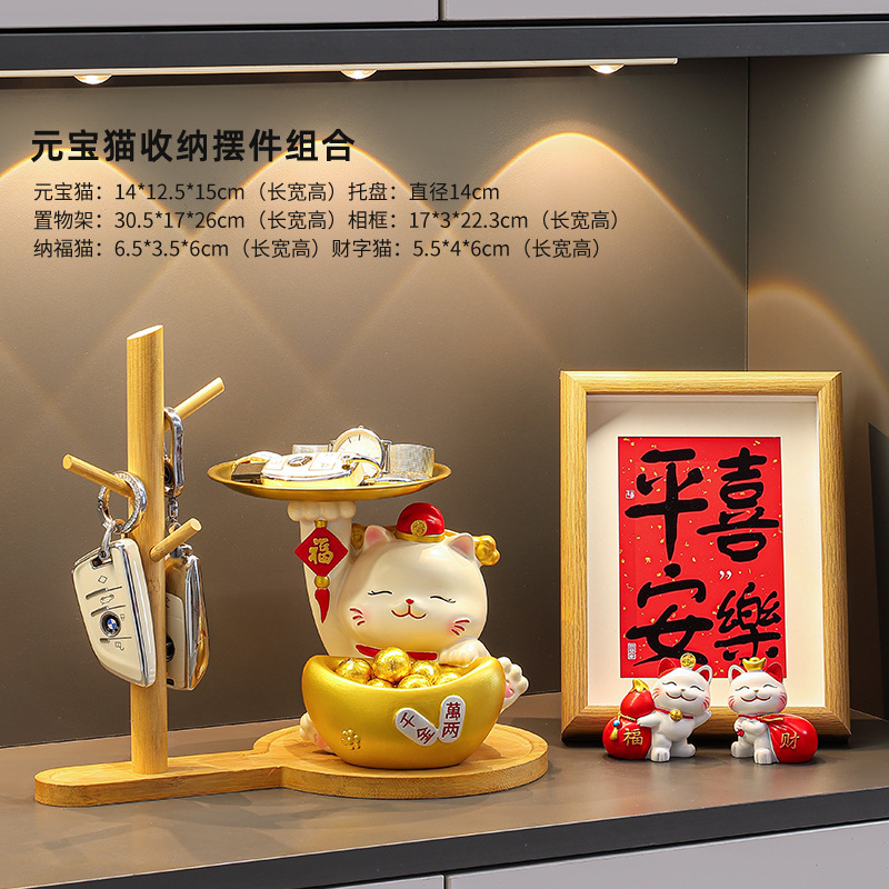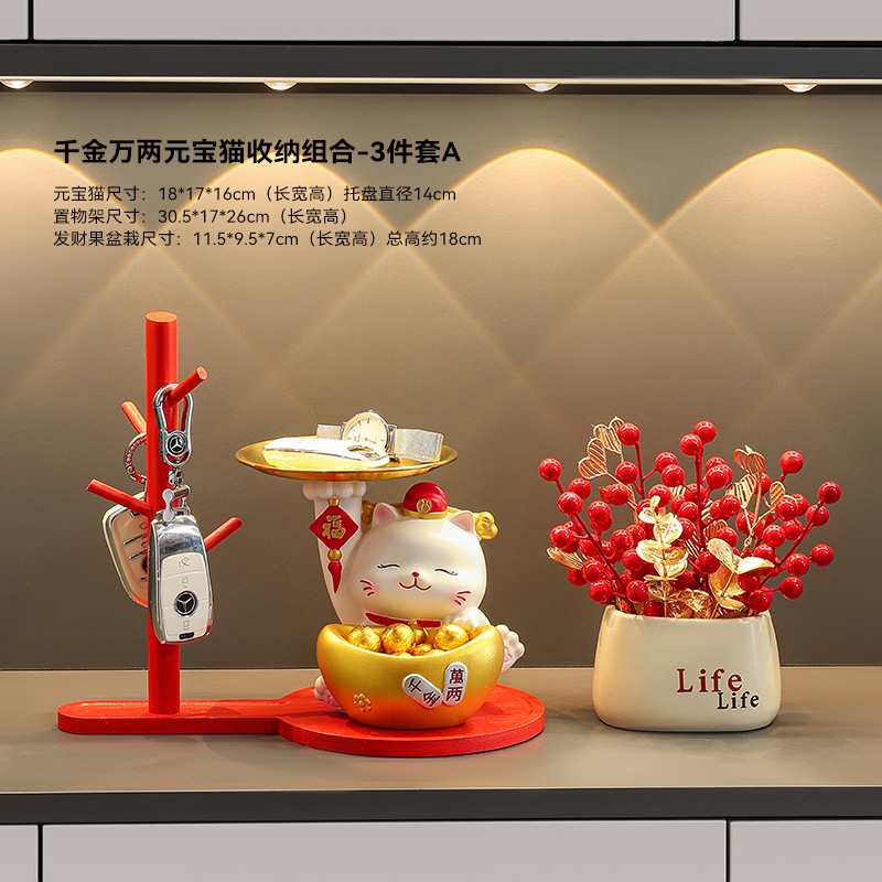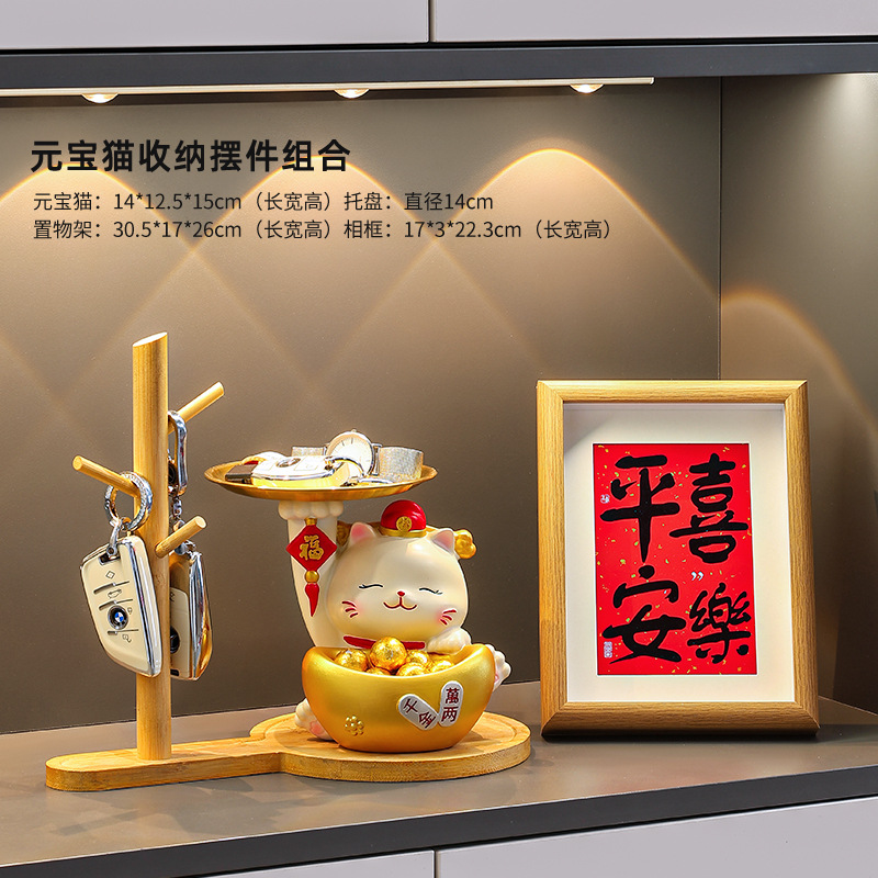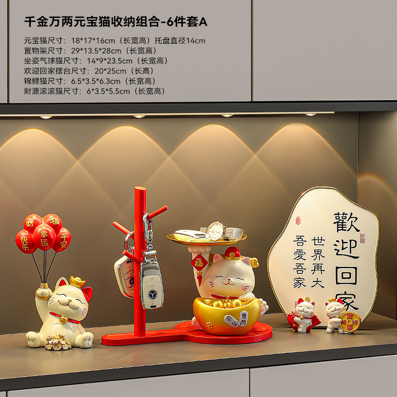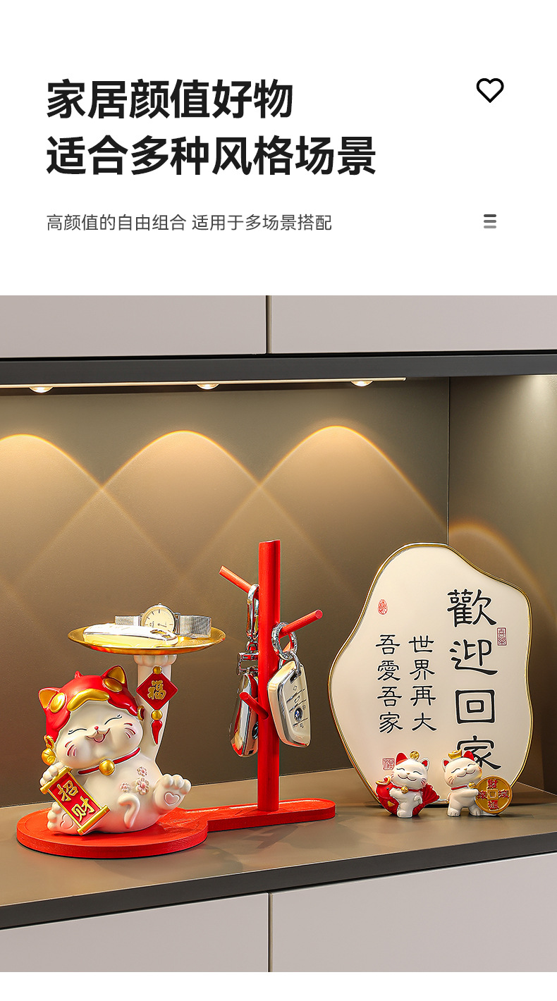 럭키 고양이 키 스토리지 복도 장식품 새해 장식 새 집 배열 이동 홈 선물 완료 세트로 이동