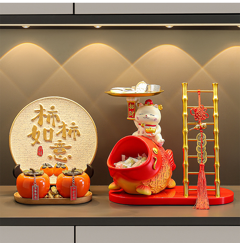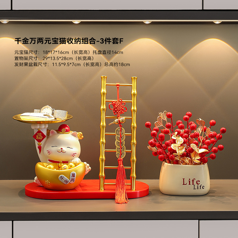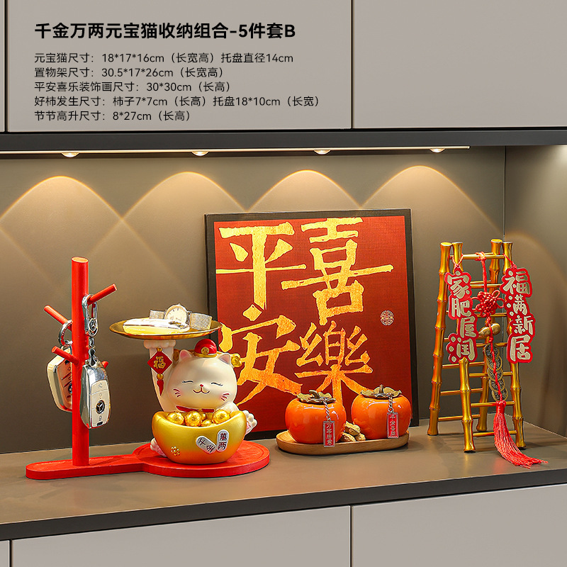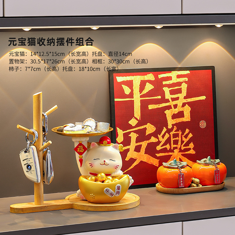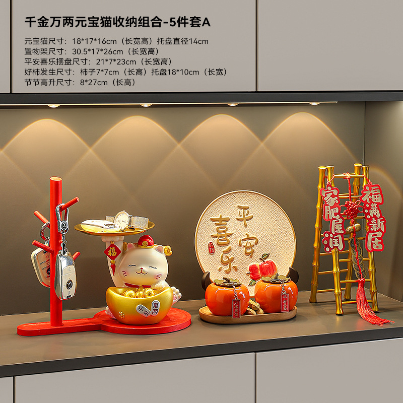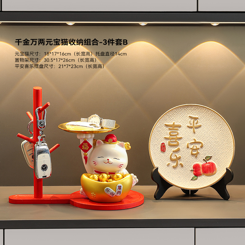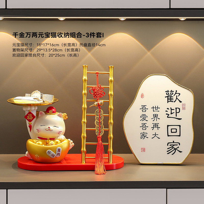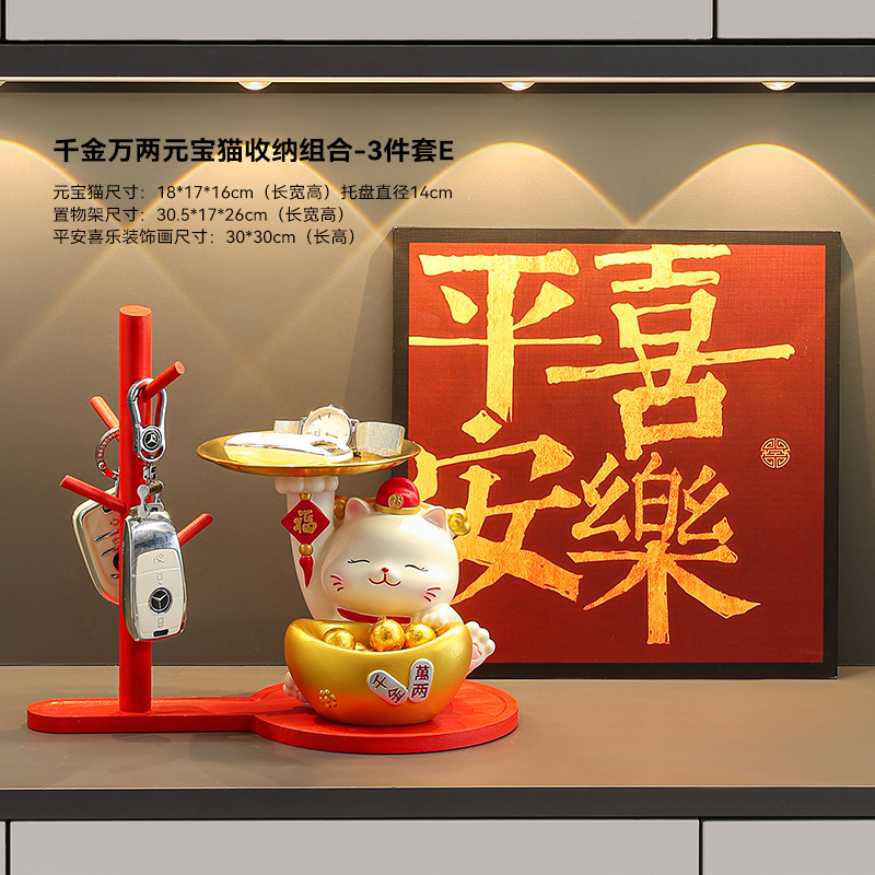 럭키 고양이 키 스토리지 복도 장식품 새해 장식 새 집 배열 이동 홈 선물 완료 세트로 이동
