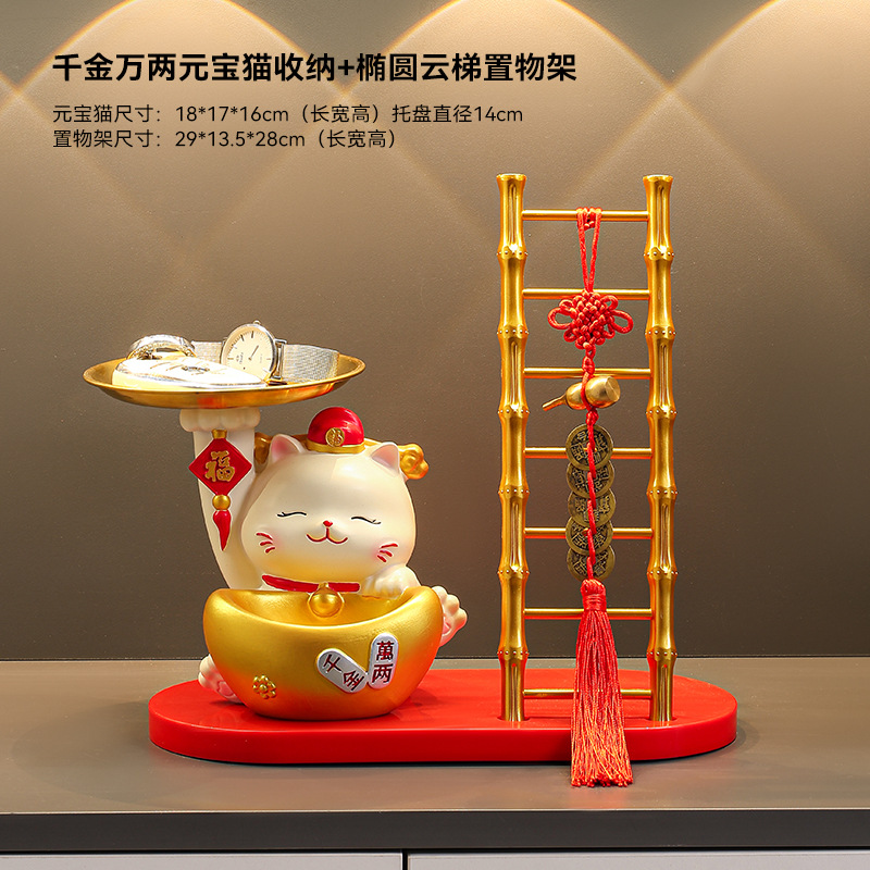 • 골드 0kg 럭키 캣 스토리지 + 타원형 사다리 스토리지 랙