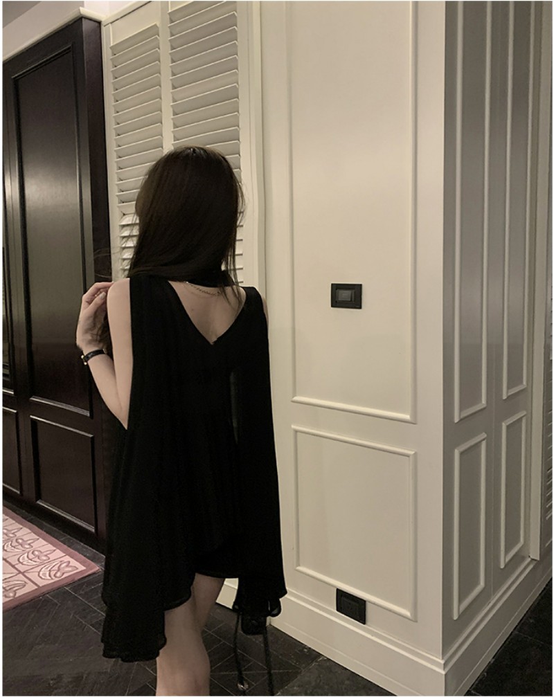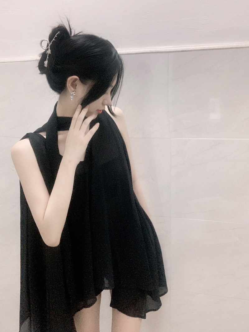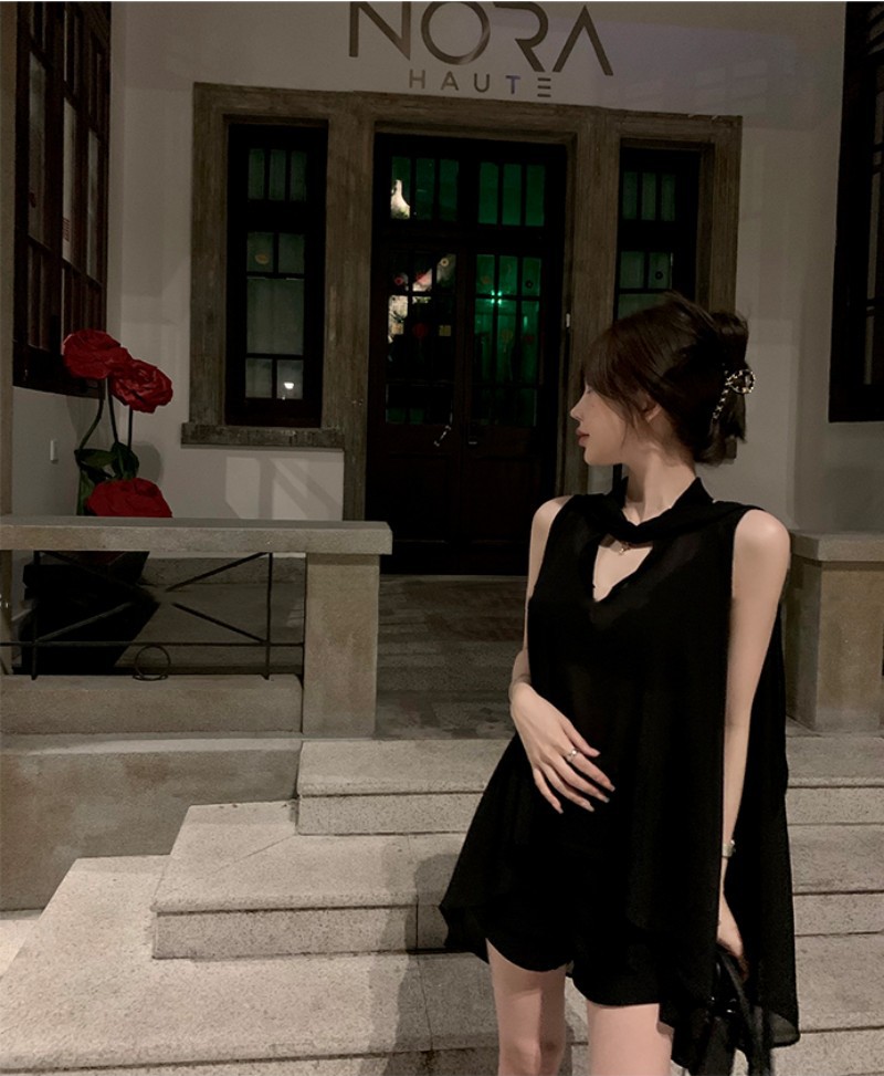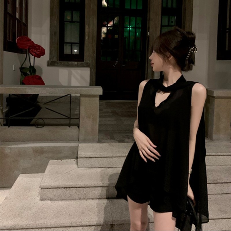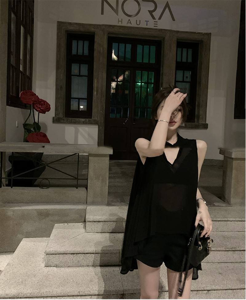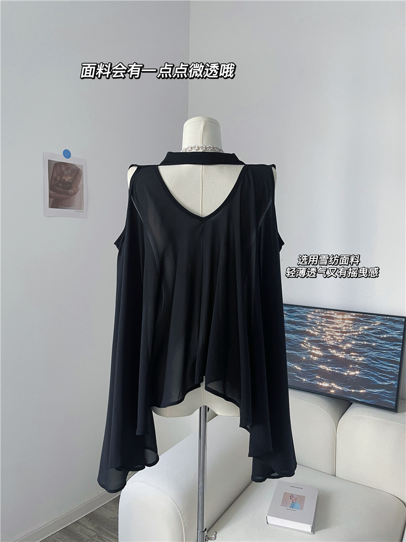 시폰 셔츠 여성 여름 2023 새로운 프랑스 스타일 순수한 욕망 달콤한 스파이스 소녀 느슨한 빈 빈 목 민소매 탑