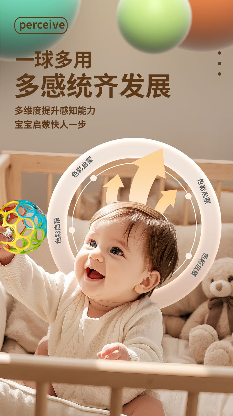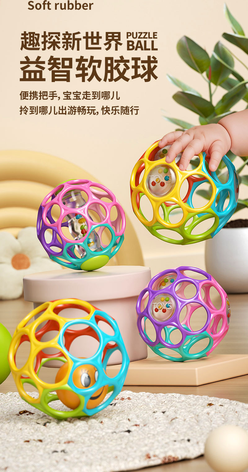 아기 맨해튼 손잡이 공, 아기의 치아 발달을 위한 씹을 수 있는 감각 발달 손잡이 공, 엄마와 아기를 위한 교육용 장난감, 딸랑이스토어 가기