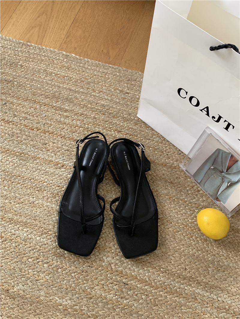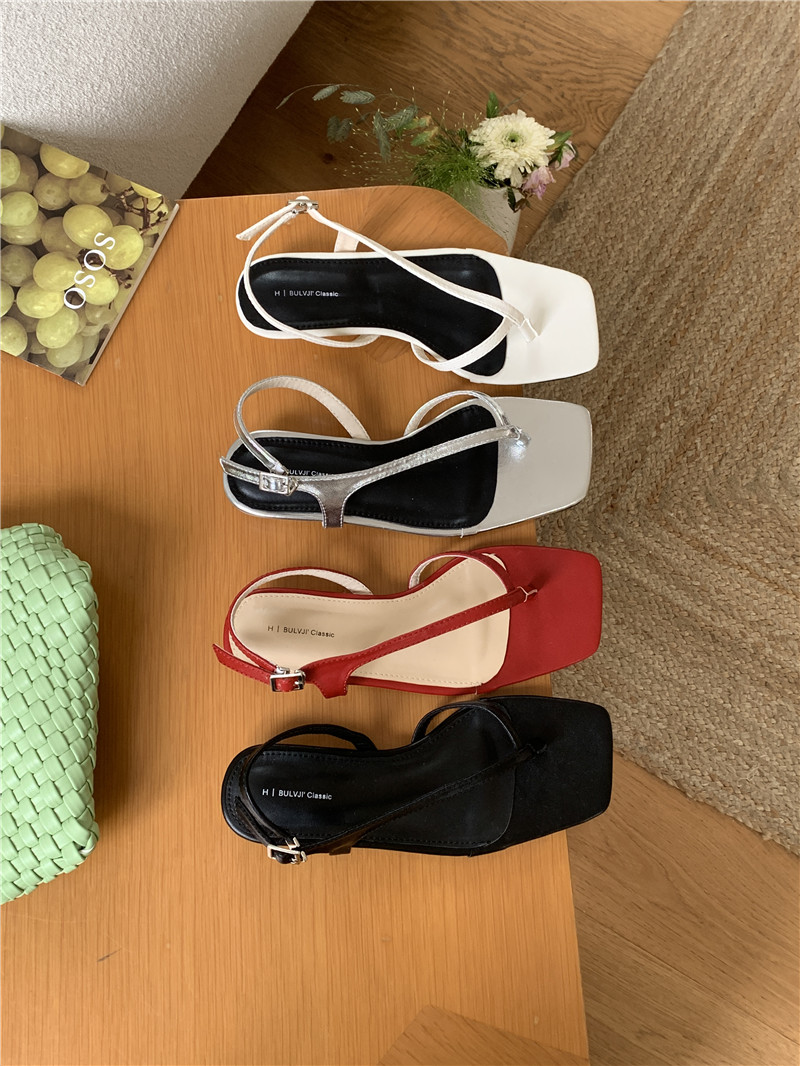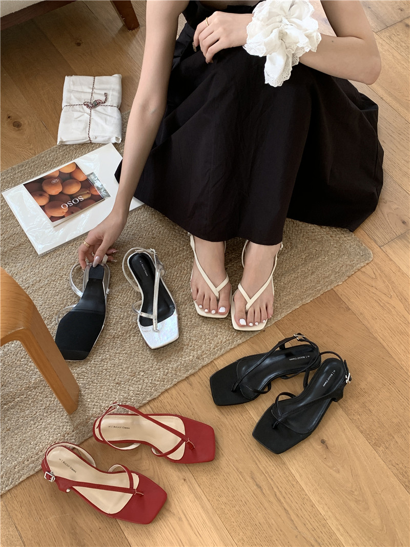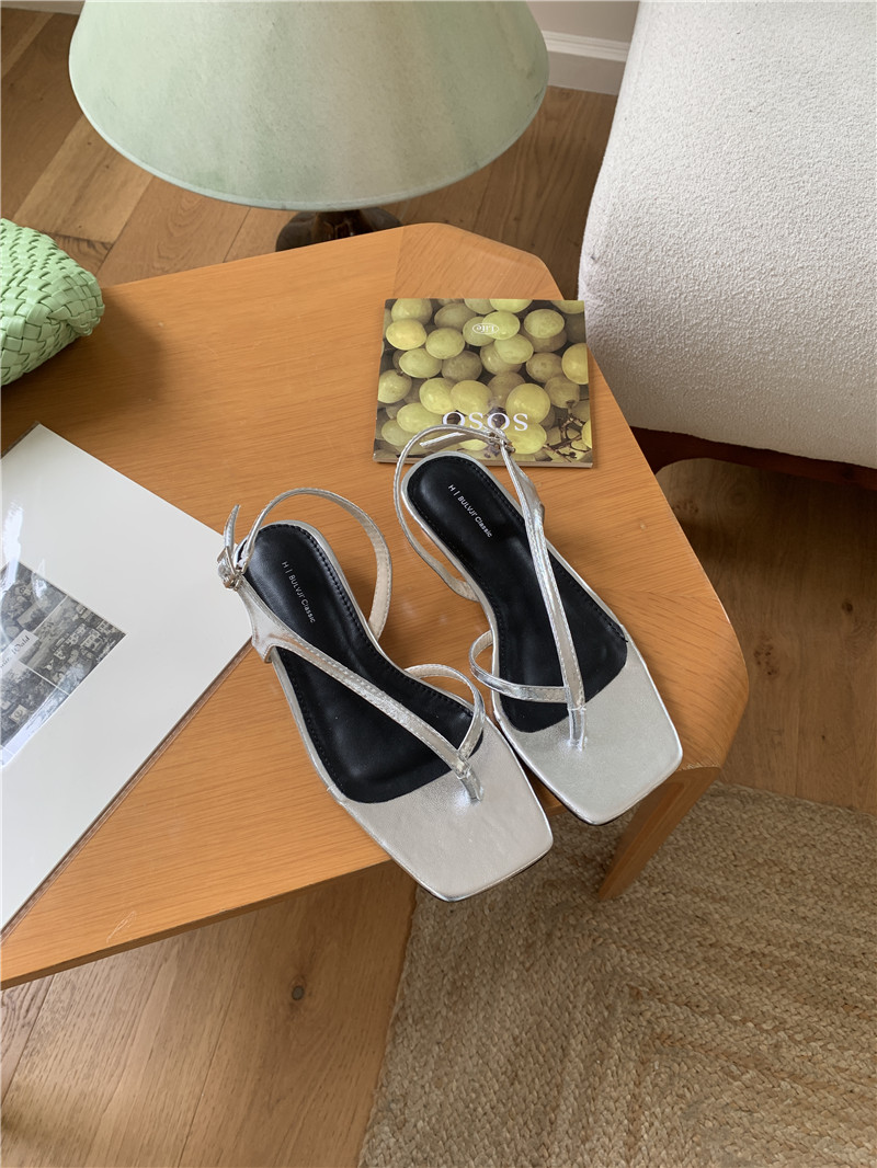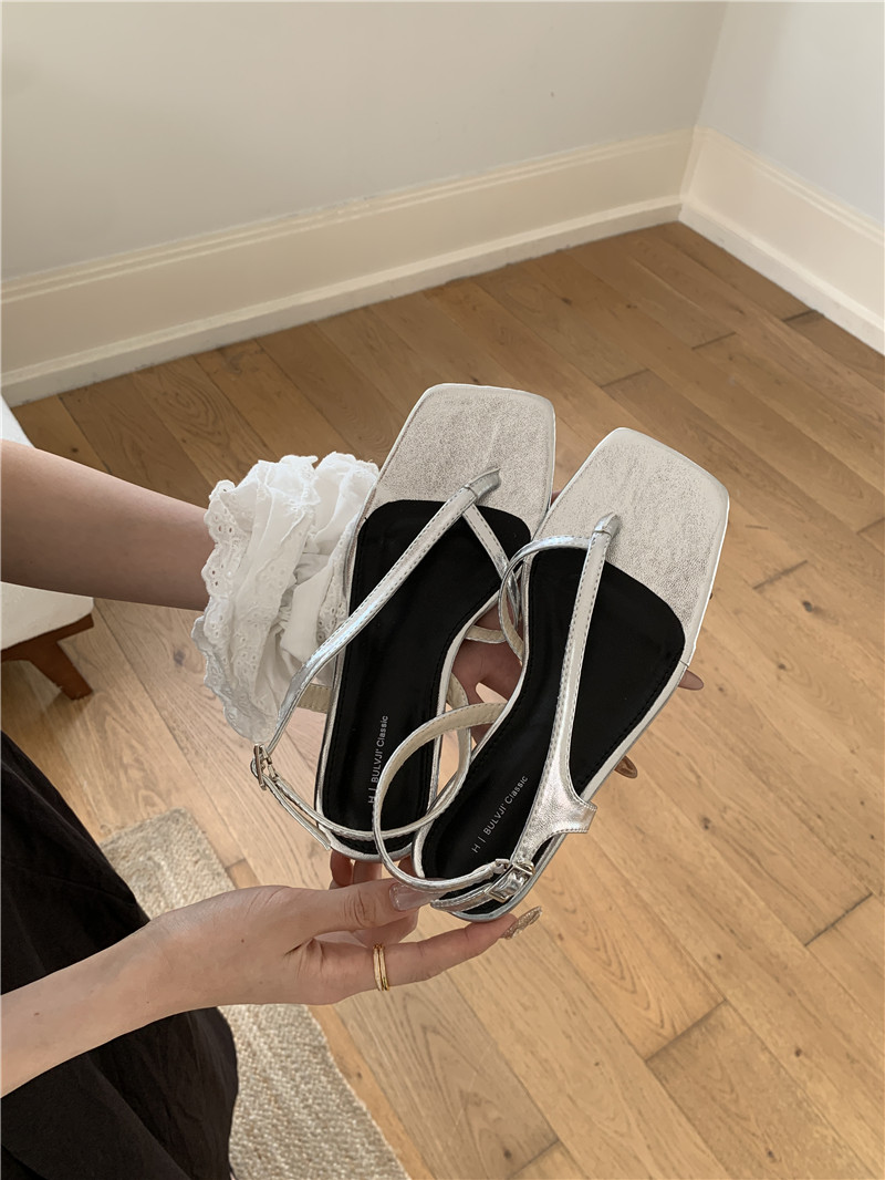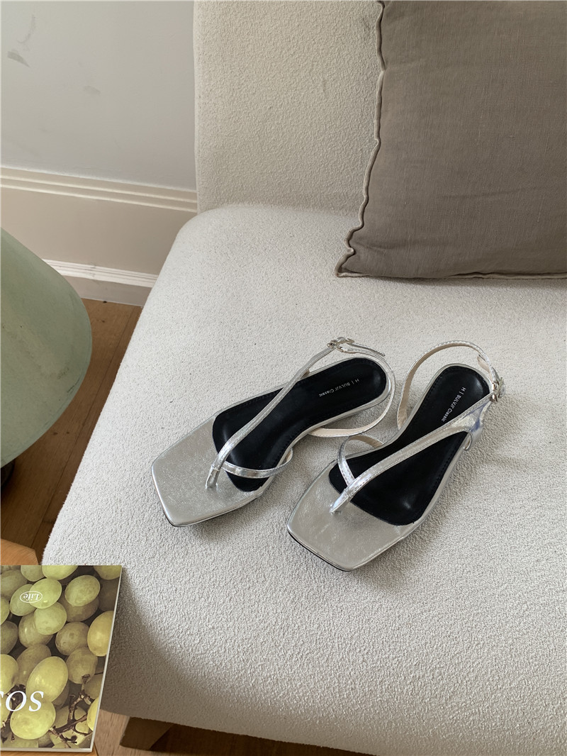 두꺼운 힐 통 샌들 여성 신발 2025 여름 새 휴일 여행 비치 슈즈 실버 통 로마 샌들 여성스토어 가기