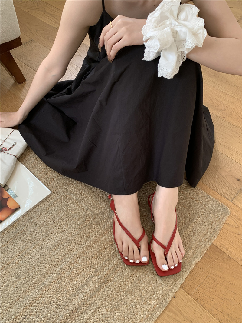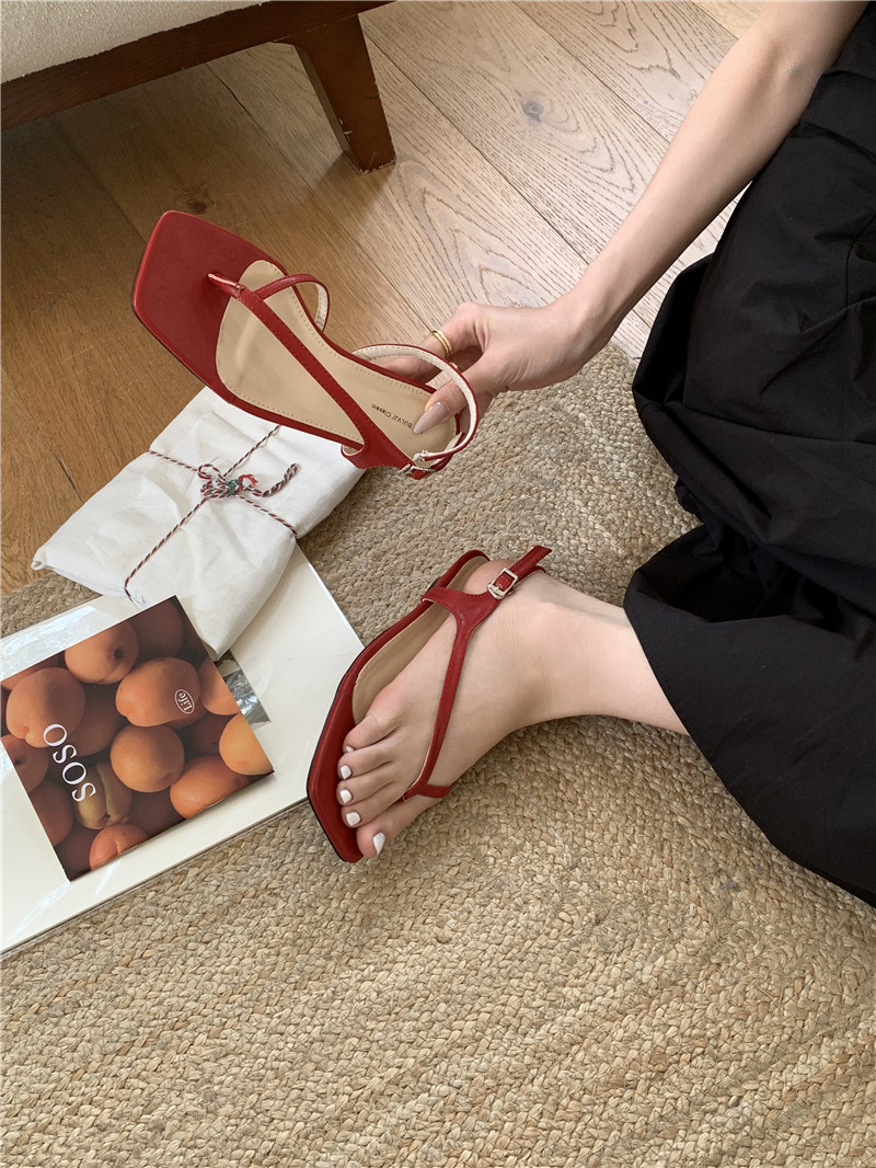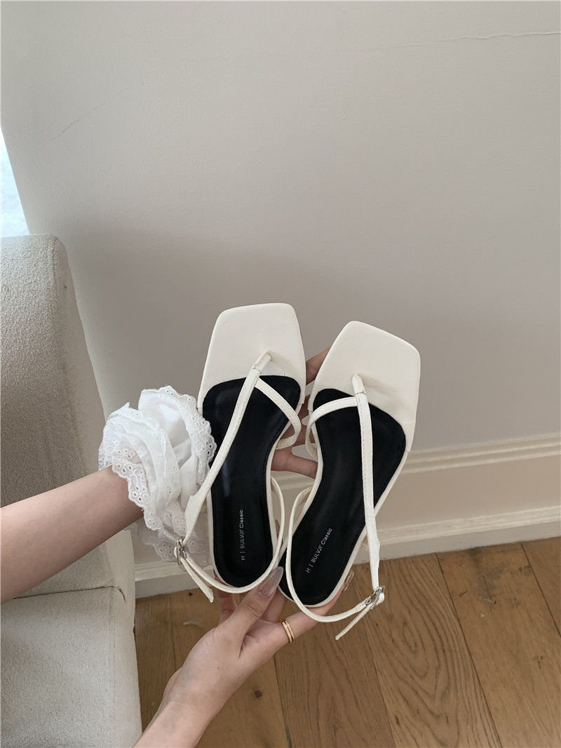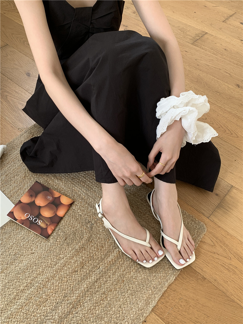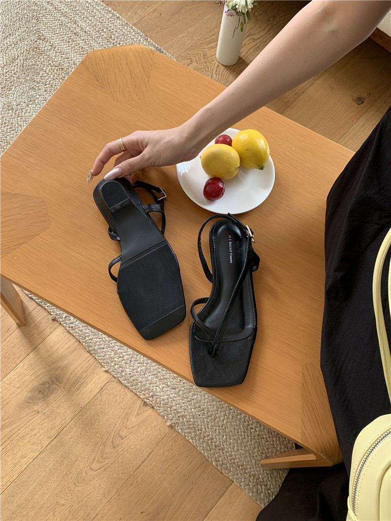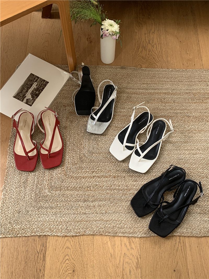 두꺼운 힐 통 샌들 여성 신발 2025 여름 새 휴일 여행 비치 슈즈 실버 통 로마 샌들 여성스토어 가기