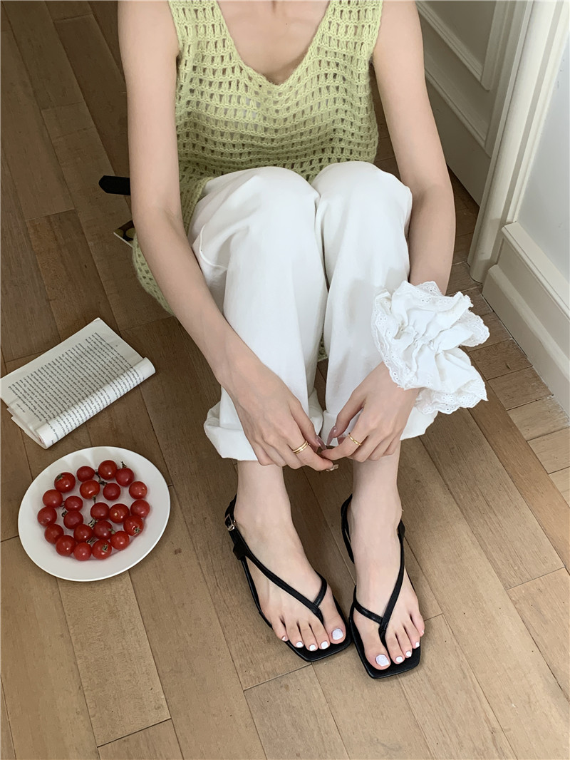 두꺼운 힐 통 샌들 여성 신발 2025 여름 새 휴일 여행 비치 슈즈 실버 통 로마 샌들 여성