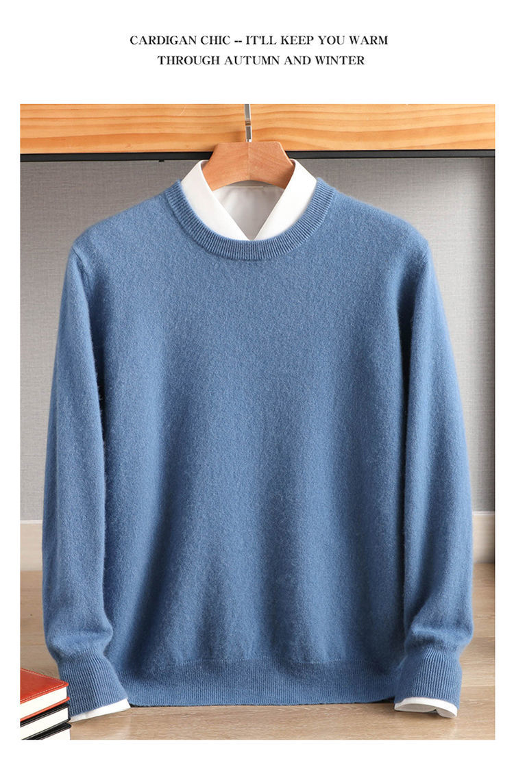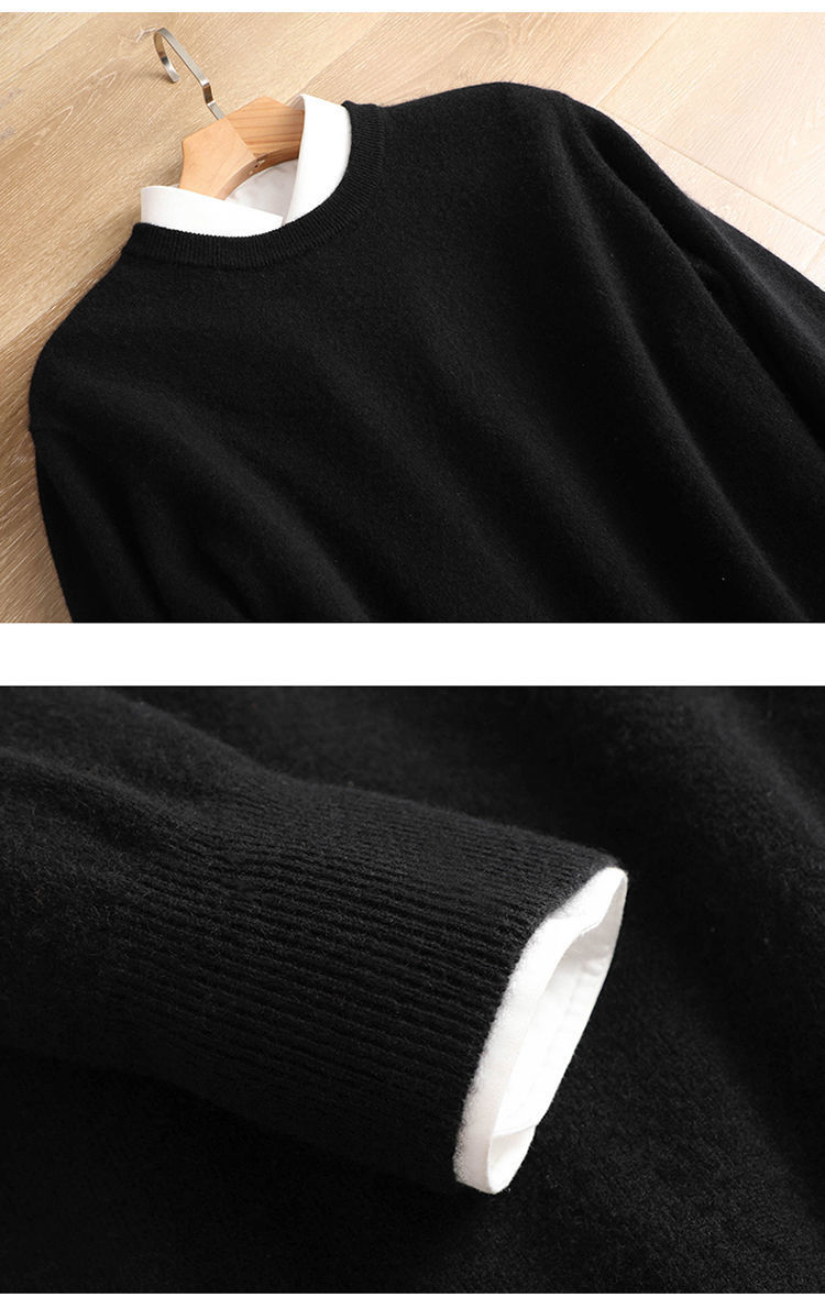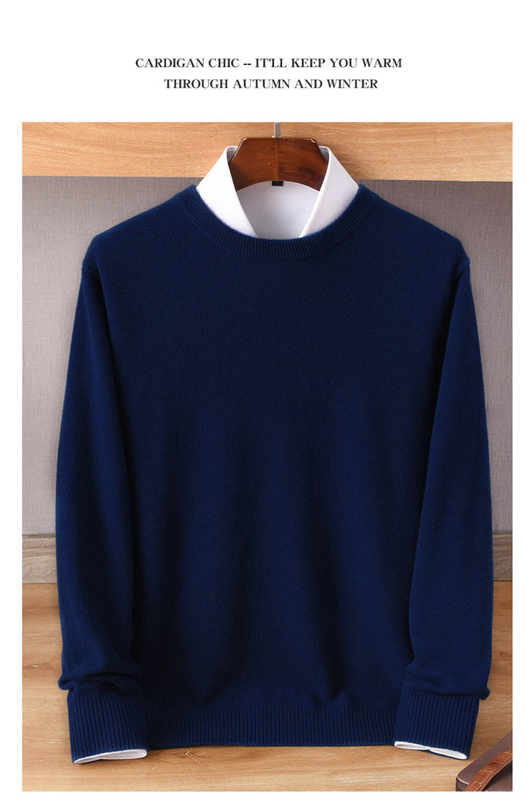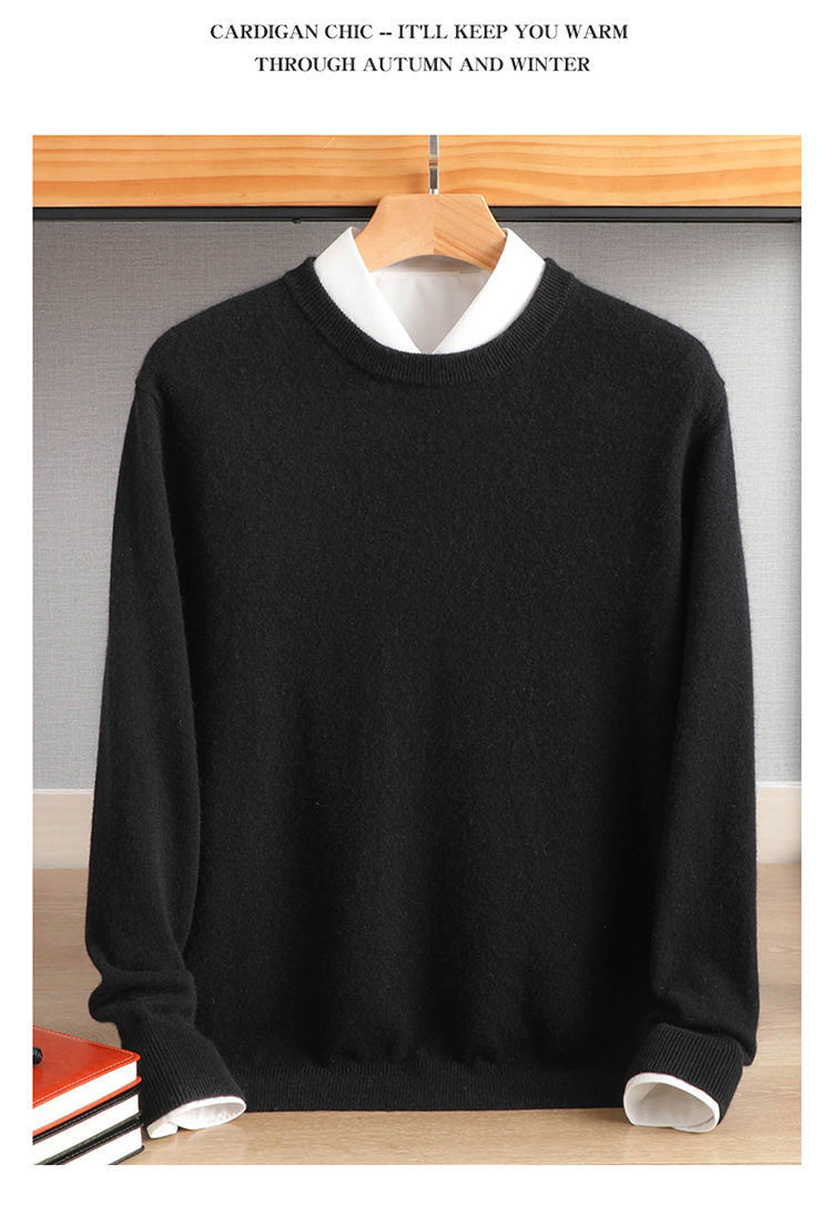 가을 겨울 남성용 비즈니스 솔리드 컬러 라운드 넥 울 스웨터 새로운 라이트 비즈니스 다목적 배트 스타일 스웨터 풀오버 바닥 셔츠