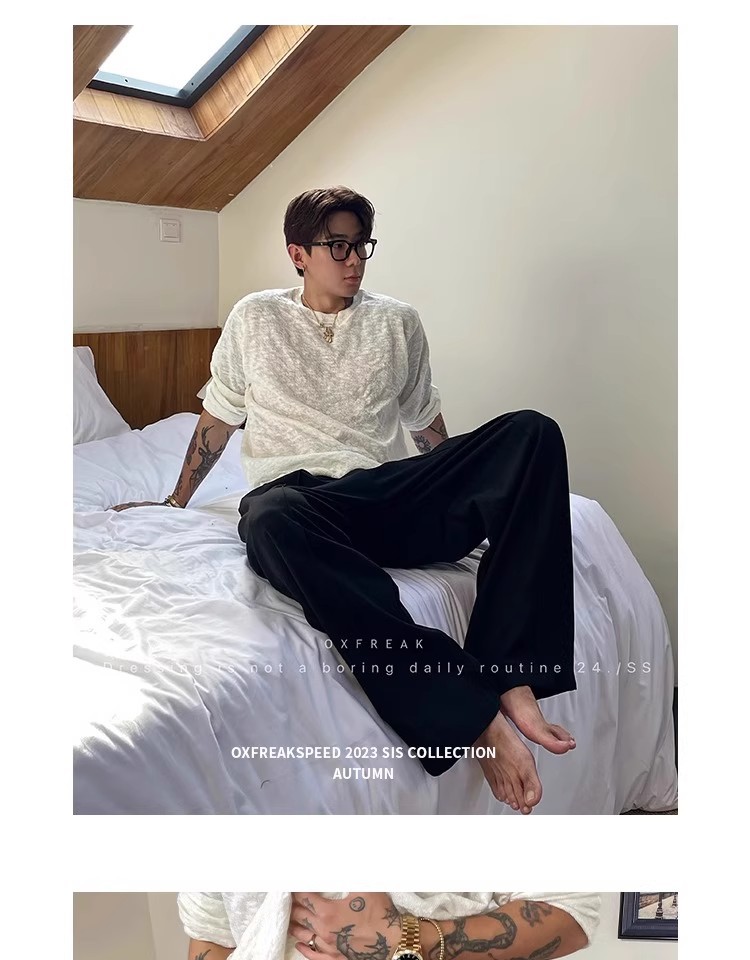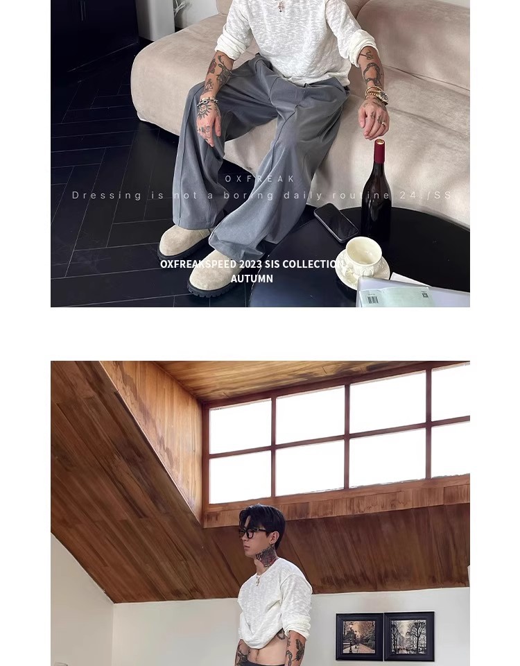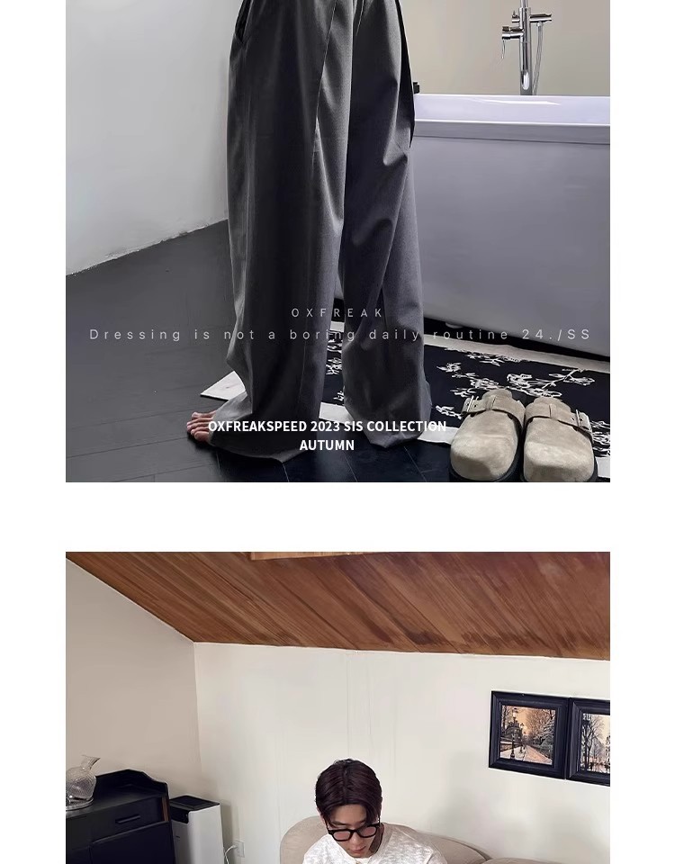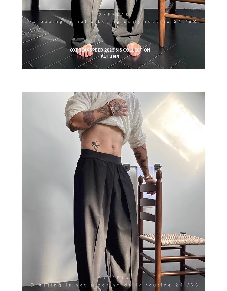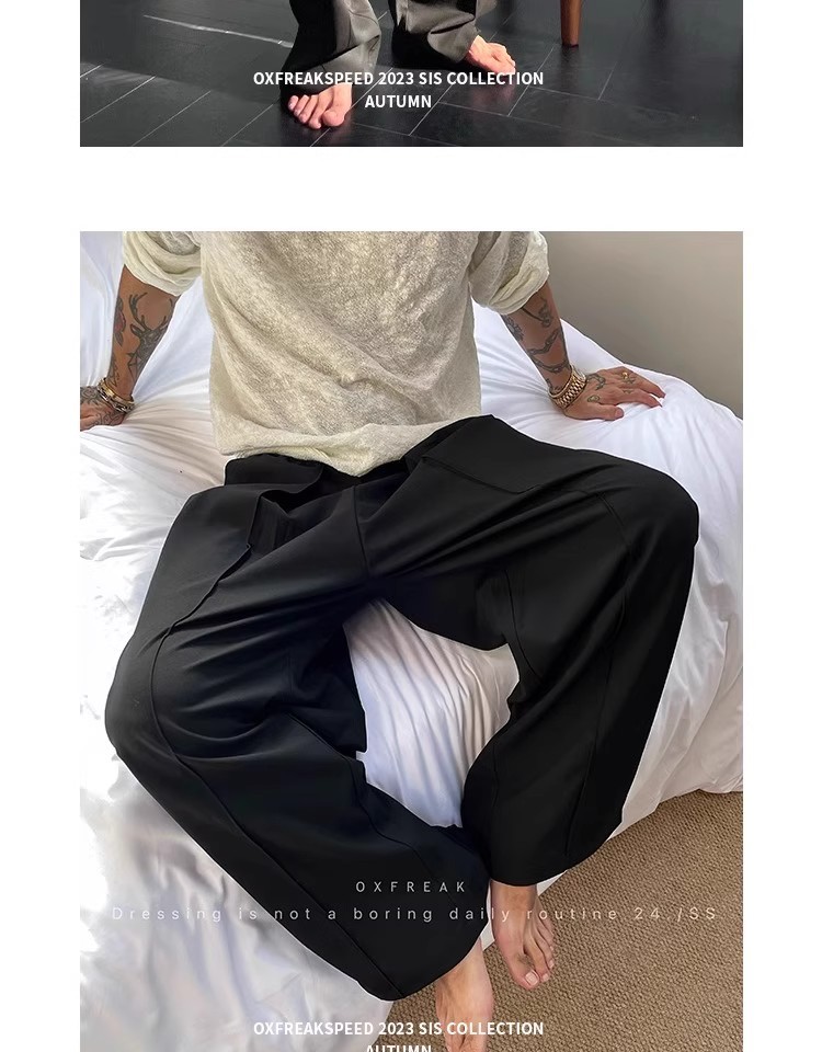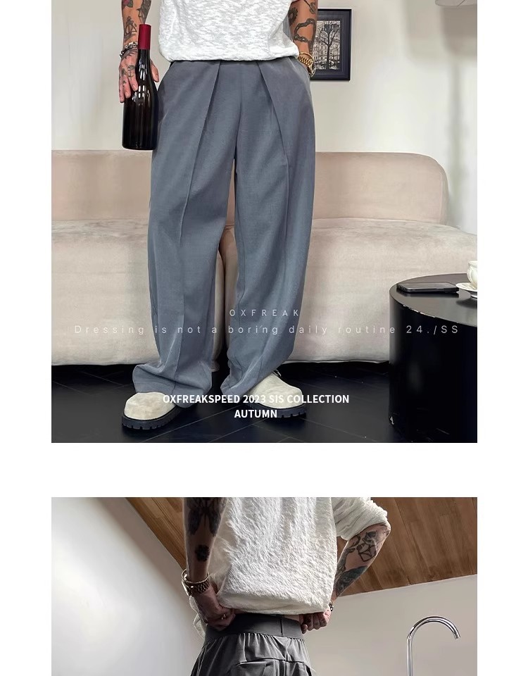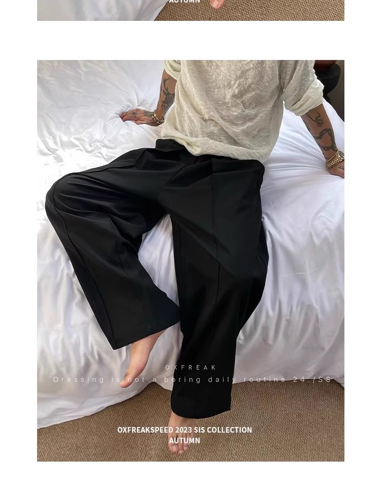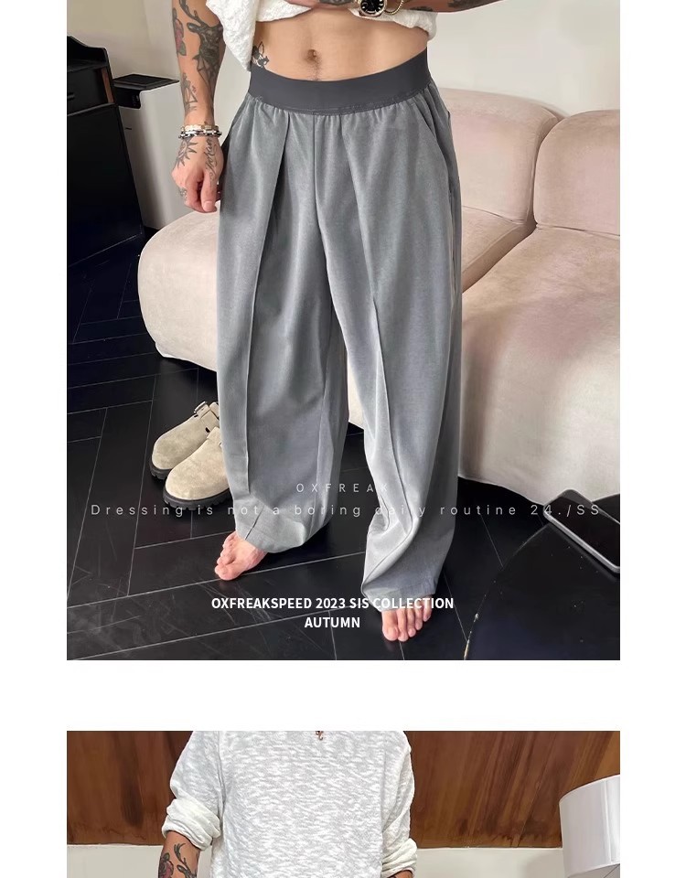 공장 직접 공급 "새우 라인 싱글 주름 넓은 처짐 느낌" 대비 컬러 탄성 허리 캐주얼 바지 남성용 두꺼운 느슨한 바지스토어 가기