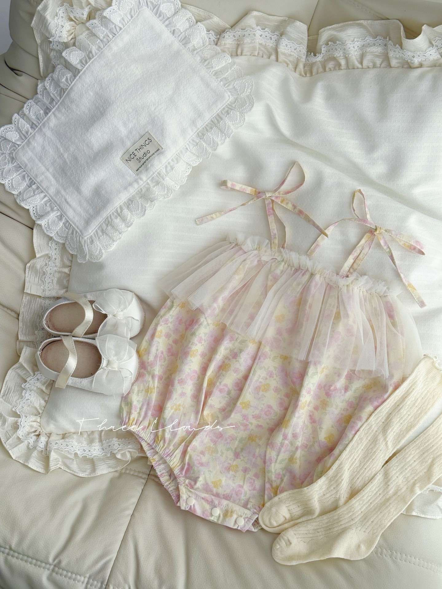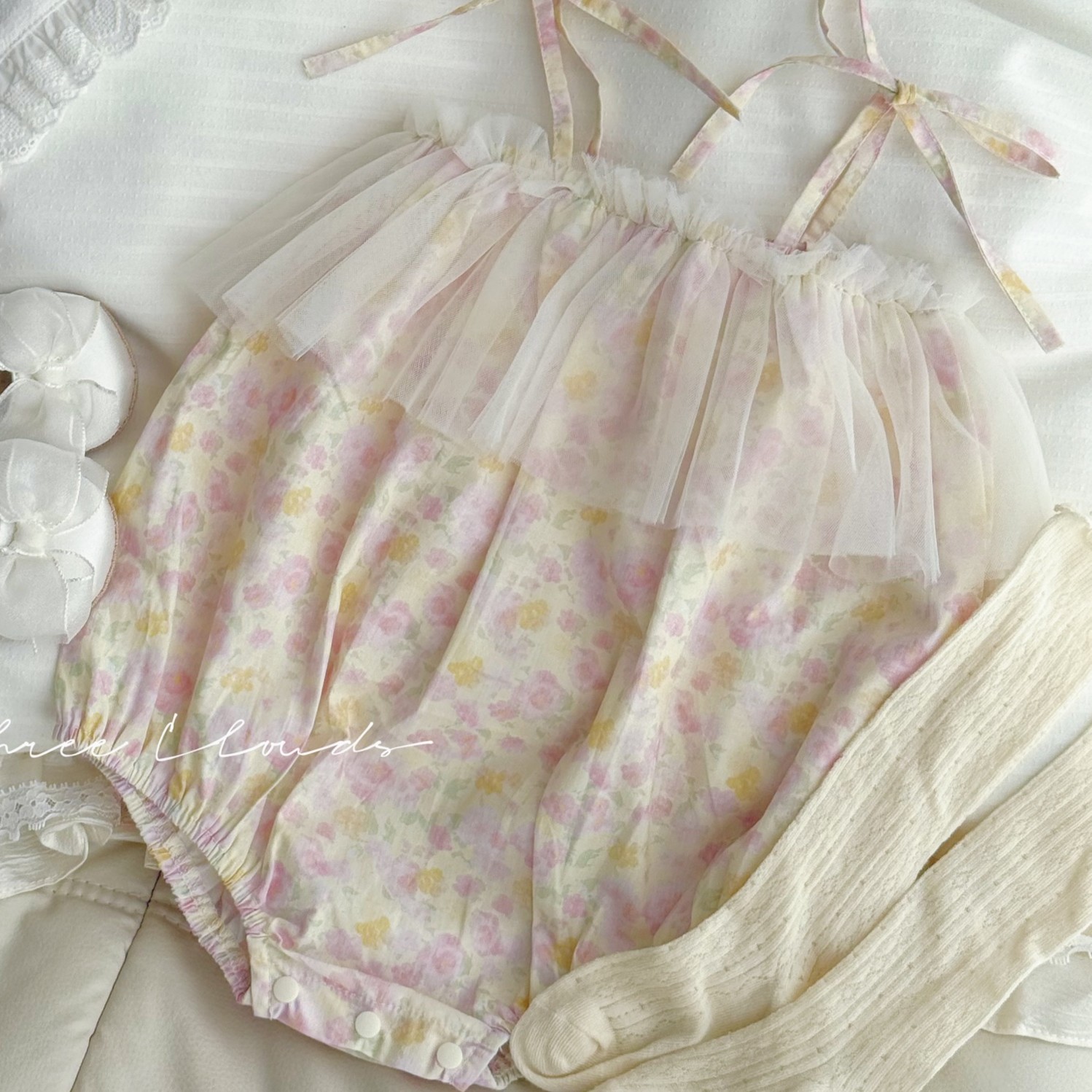 여자 아기, 유아용 서스펜더, 꽃무늬, 신선한 요정 스타일, 100일 여름 드레스, 거즈 스커트, 하렘