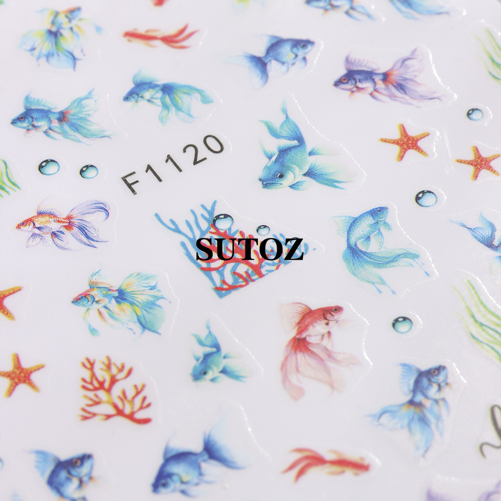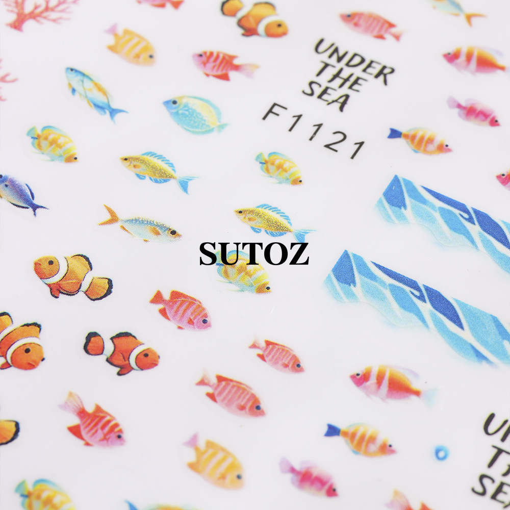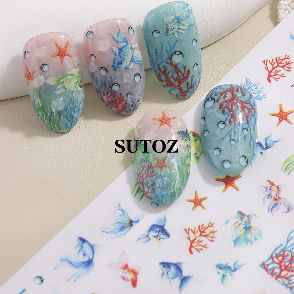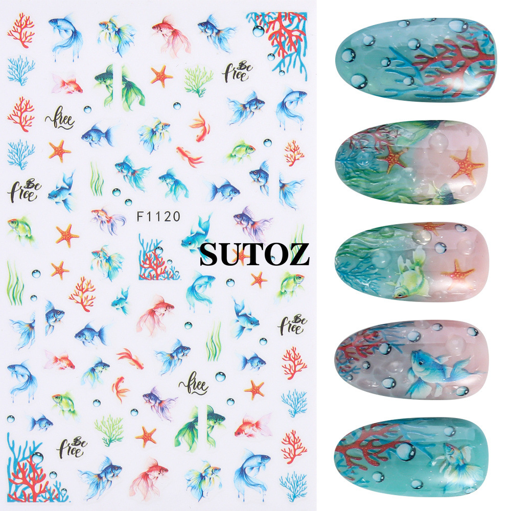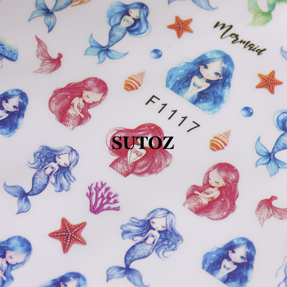 국경 간 뉴 네일 아트 스티커 여름 드림 블루 시리즈 인어 공주 돌고래 물고기 못 뒤로 접착 스티커스토어 가기